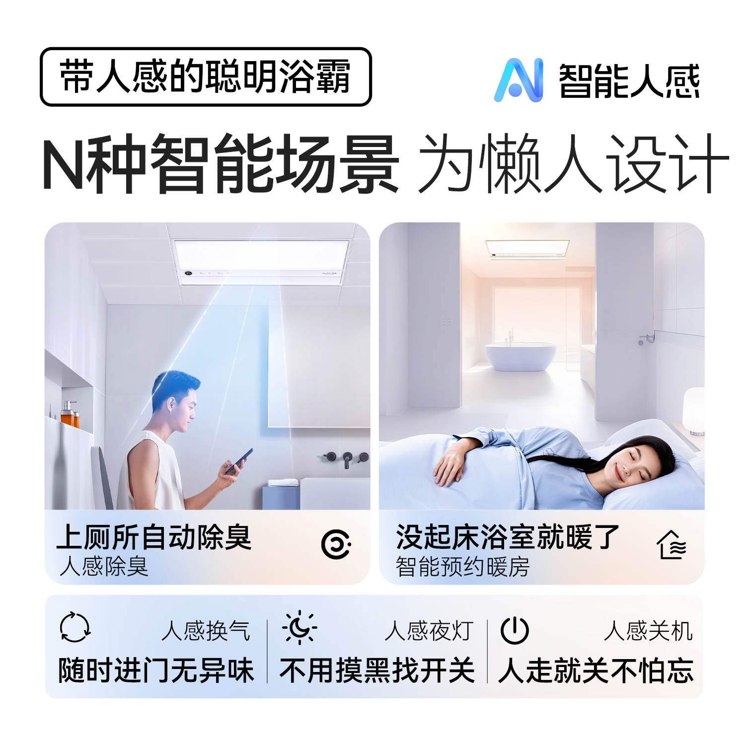 奥普浴霸AI恒温除臭智能人感
