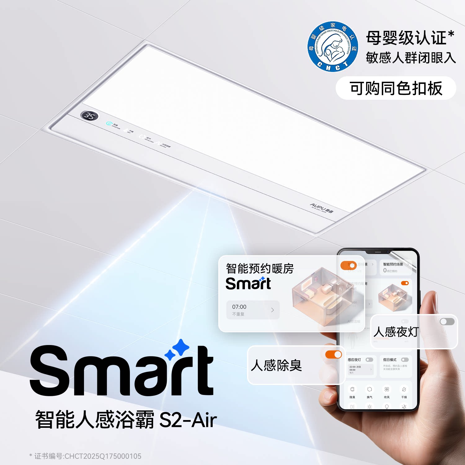 奥普风暖浴霸官方旗舰smart智能人感浴霸照明排气扇一体浴室S2Air