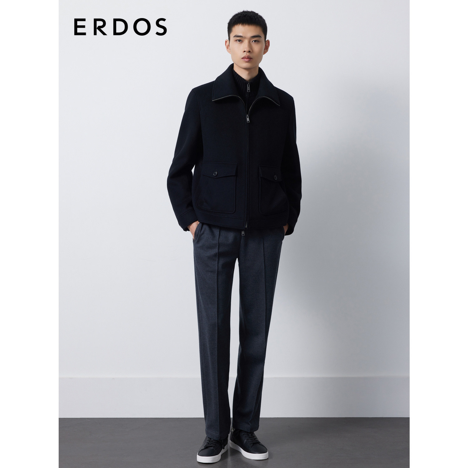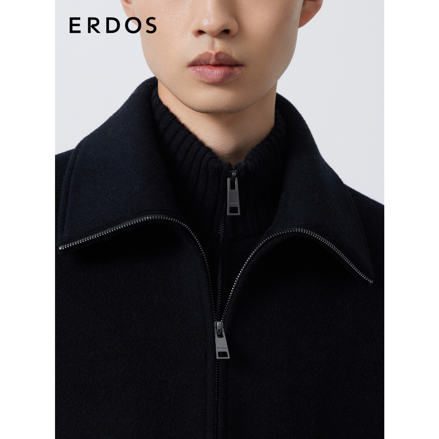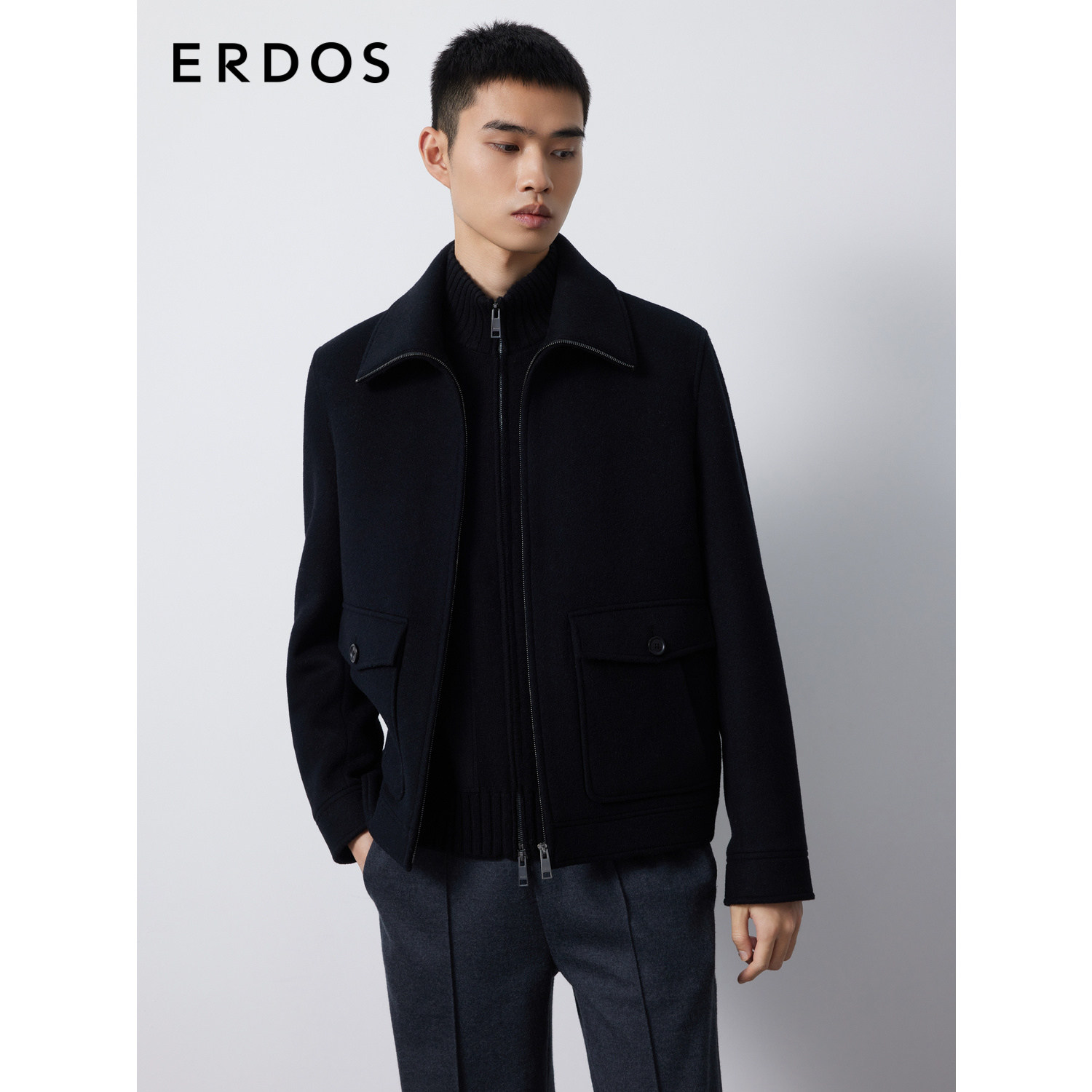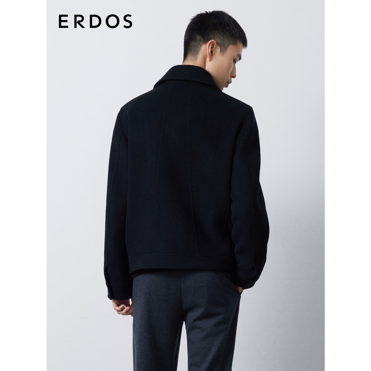 ERDOS 男装骆驼绒夹克秋冬曜石黑短款工装外套厚款挺括有型