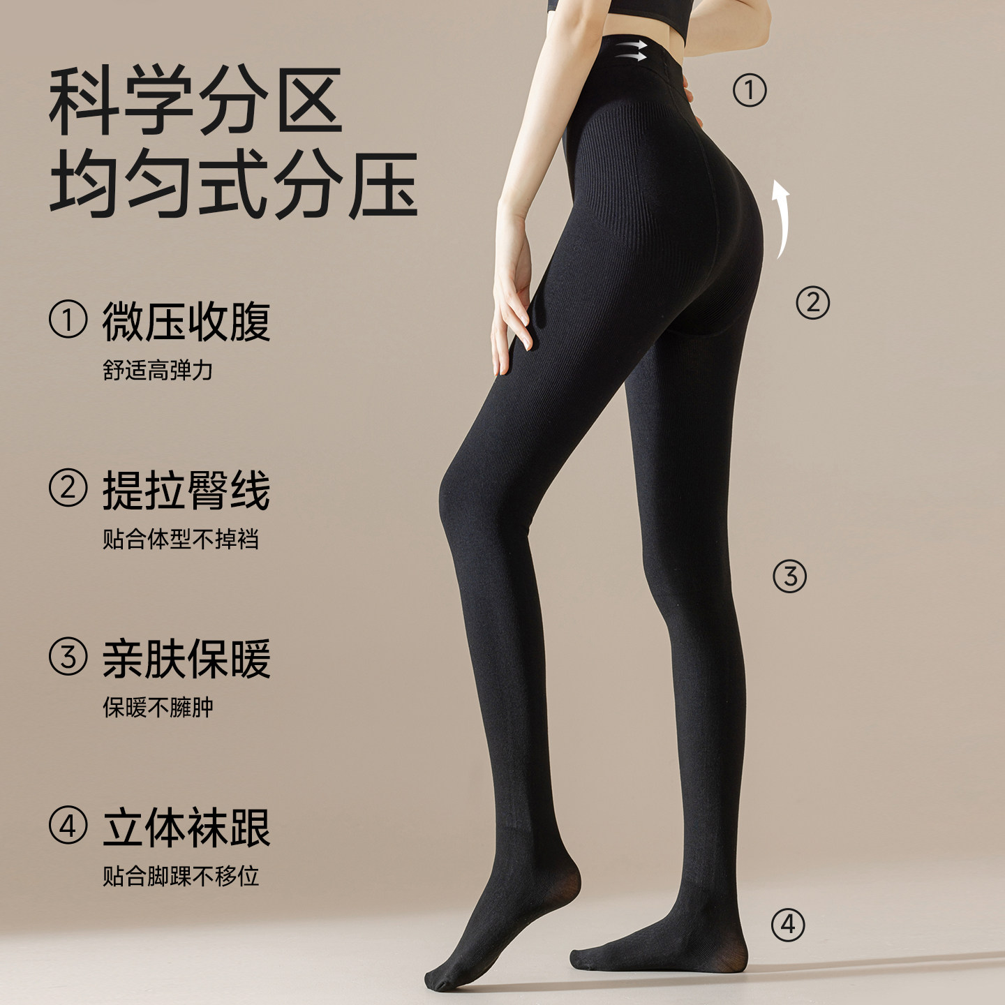 猫人灰色羊毛打底裤女加绒加厚秋冬可外穿黑色压力瘦腿踩脚连裤袜