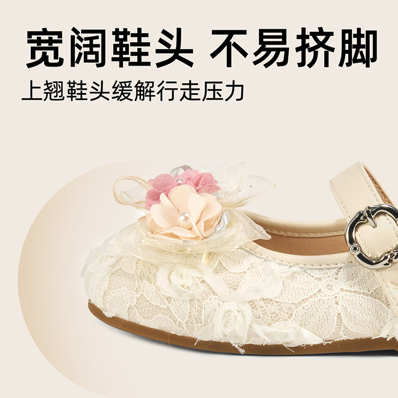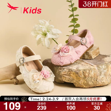 【国风】红蜻蜓童鞋公主鞋春季新款舞蹈鞋软底宝宝蕾丝女童鞋