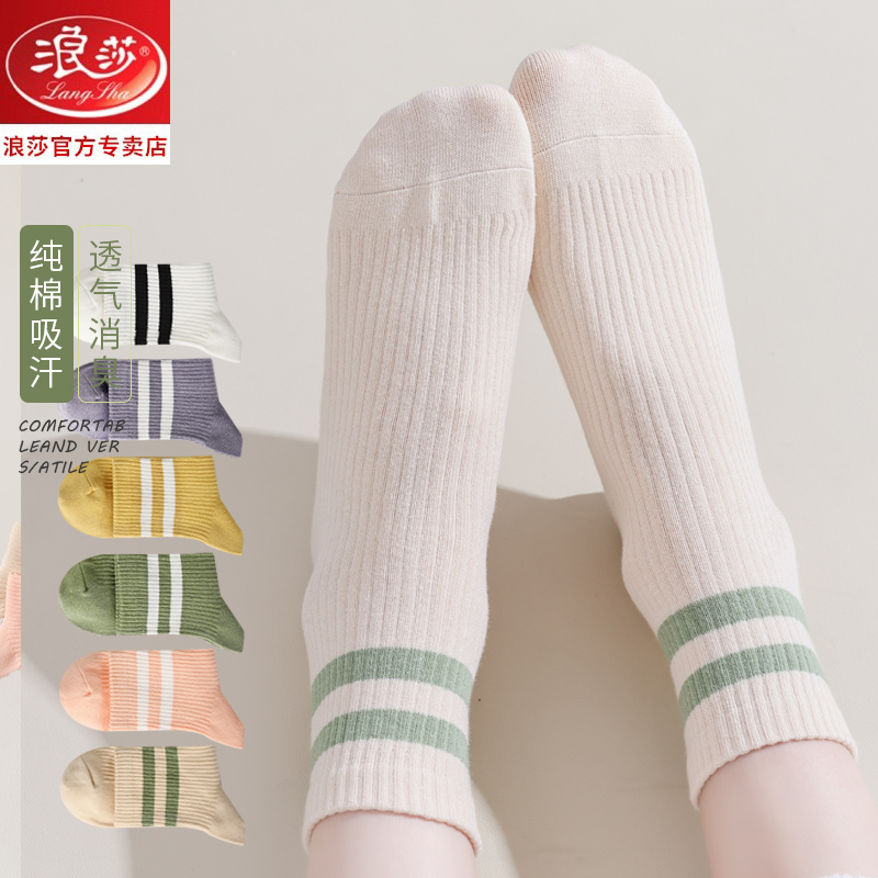 浪莎袜子女士纯棉四季款中筒舒适女袜吸汗透气春秋运动型学生棉袜