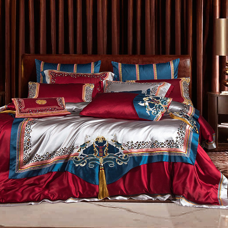 床上用品婚庆四件套 欧w式大气酒红色结婚六八十件套新婚床单