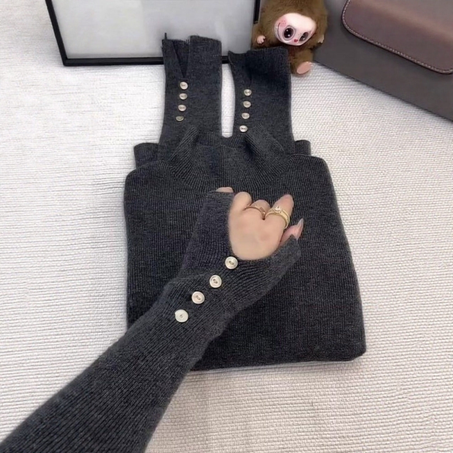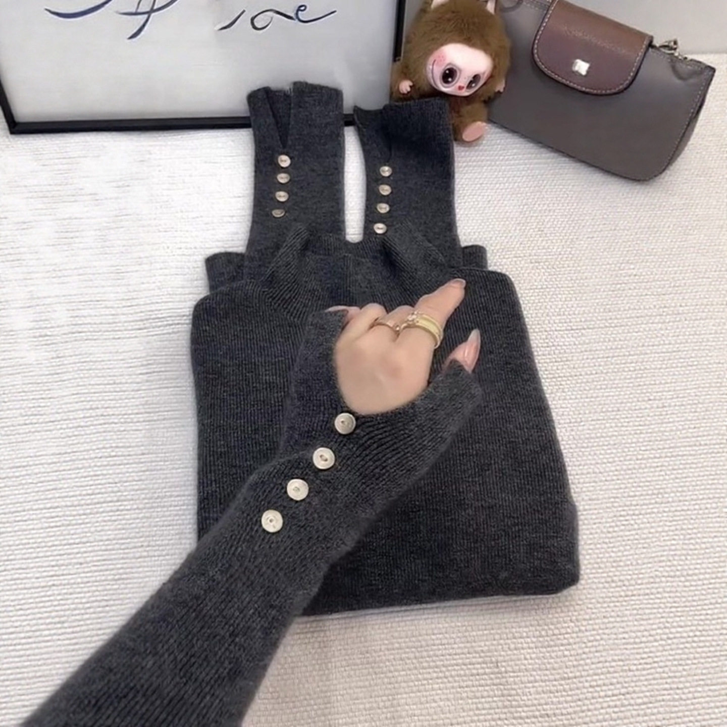 灰色半高领长袖针织打底衫上衣秋冬2025新款高级感软糯毛衣女内搭