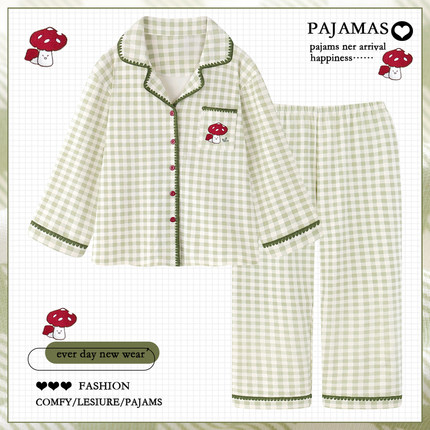 甜美格子睡衣女款春秋季纯棉长袖可外穿套装高级感家居服2025新款