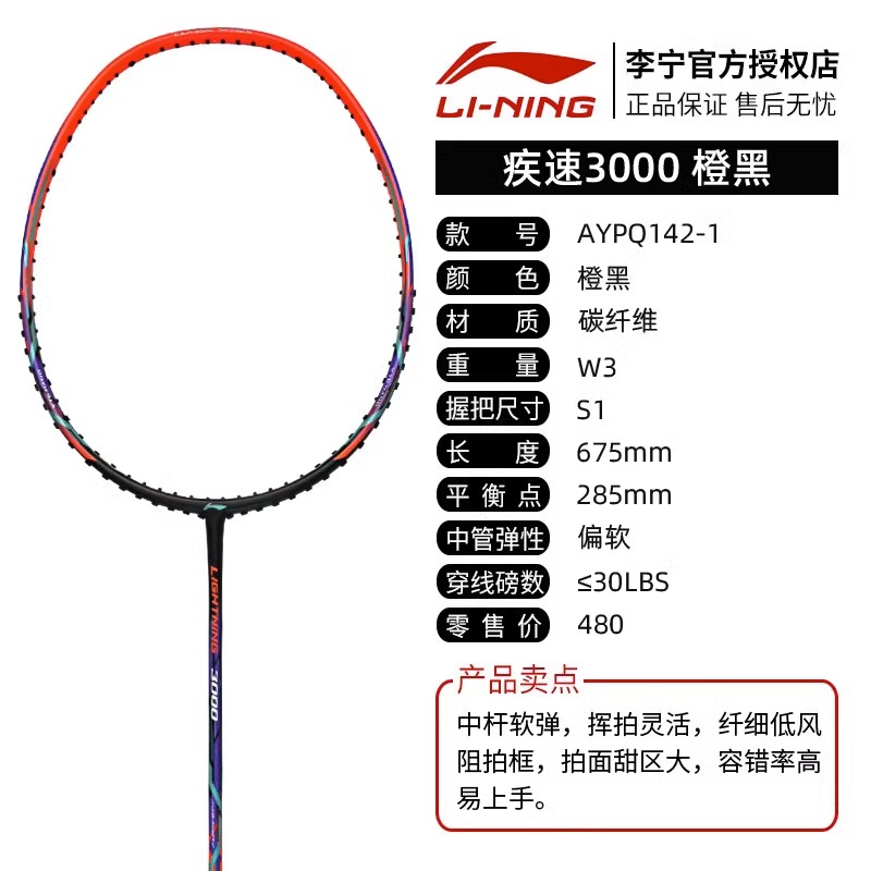 李宁羽毛球拍疾速3000全碳素大甜区极速2000速度进攻拍大甜区单拍