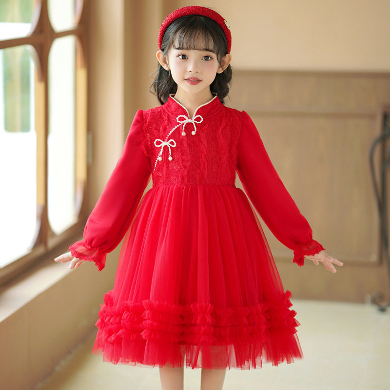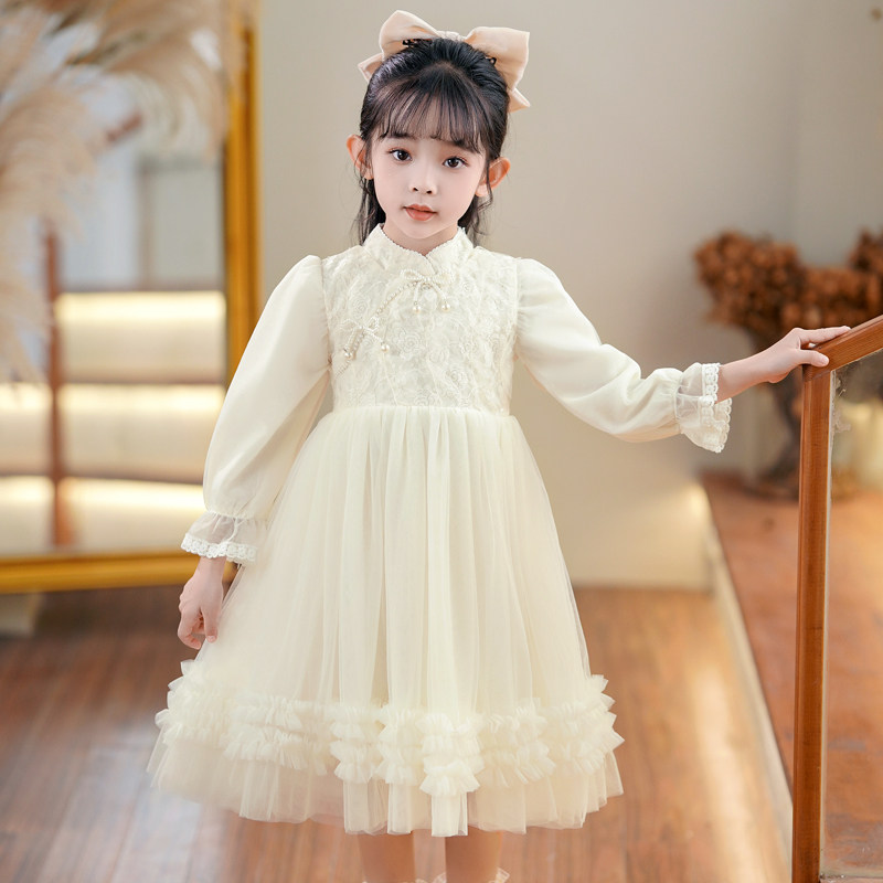 女童旗袍公主裙春秋儿童洋气高端连衣裙冬季加绒宝宝生日礼服裙子