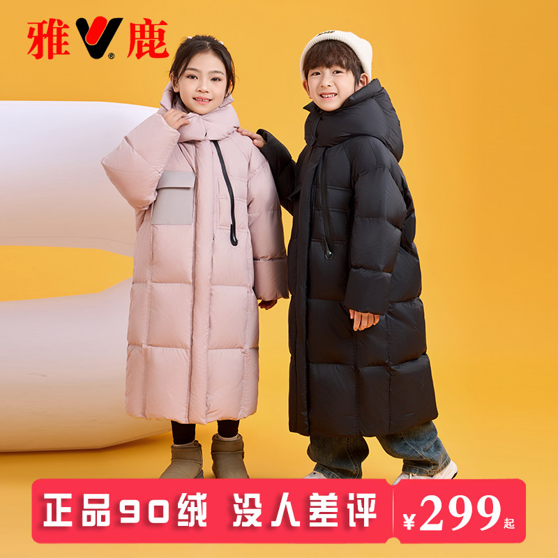 雅鹿儿童长款过膝男童女童羽绒服冬季2025新款中大童冬装加厚外套