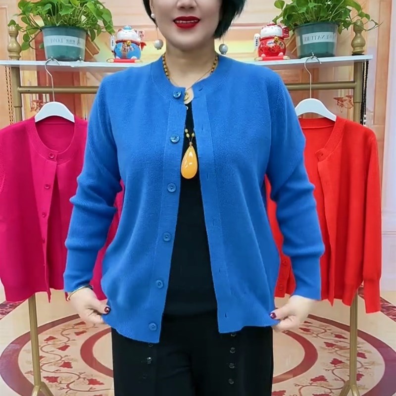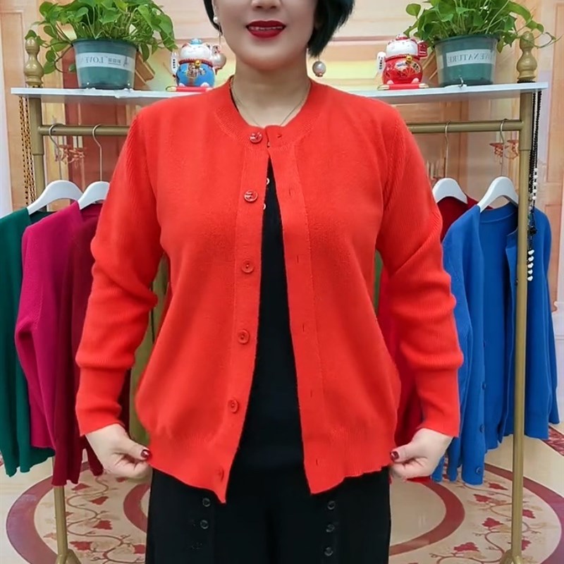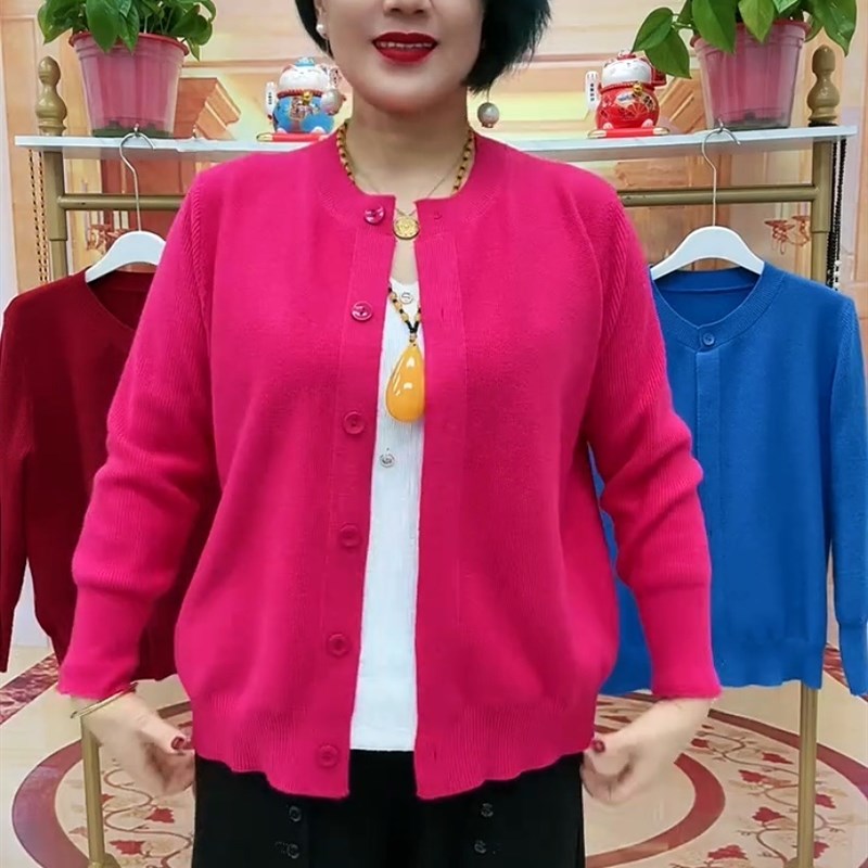 2024春季彩色排扣针织开衫外套时尚宽松女装百搭上衣中老年妈妈装