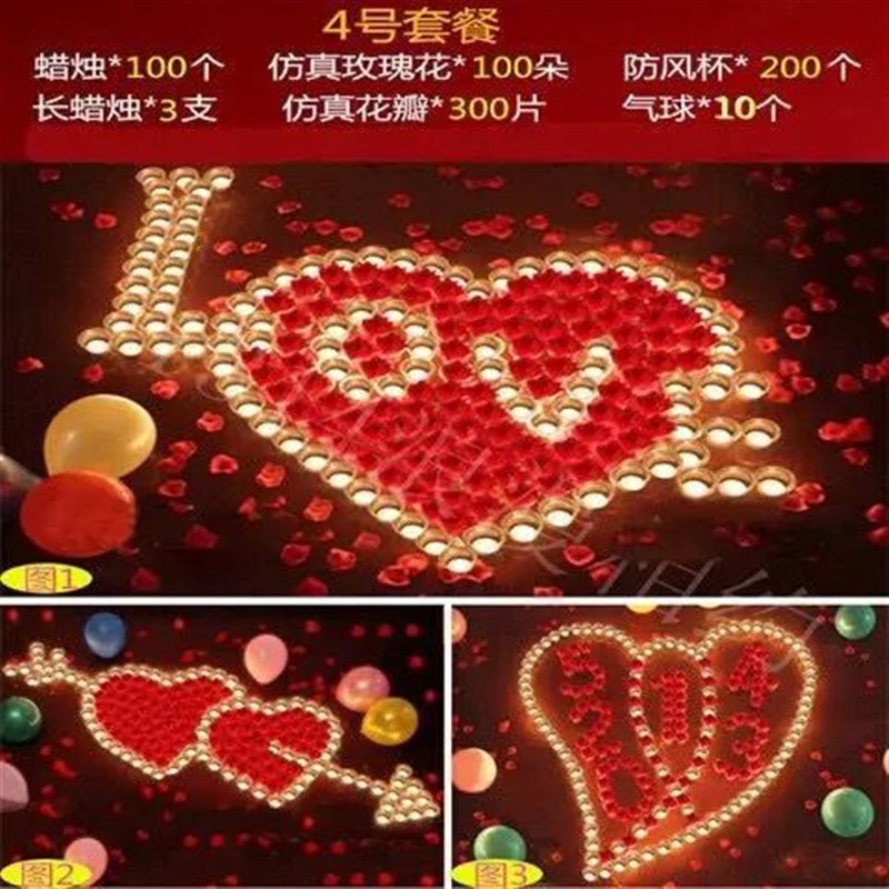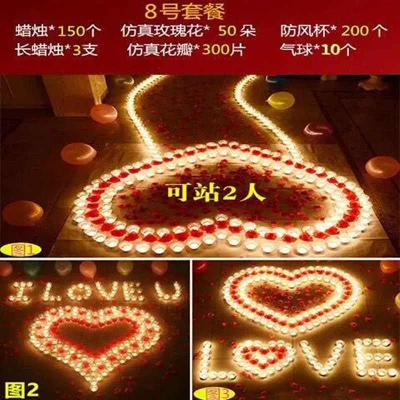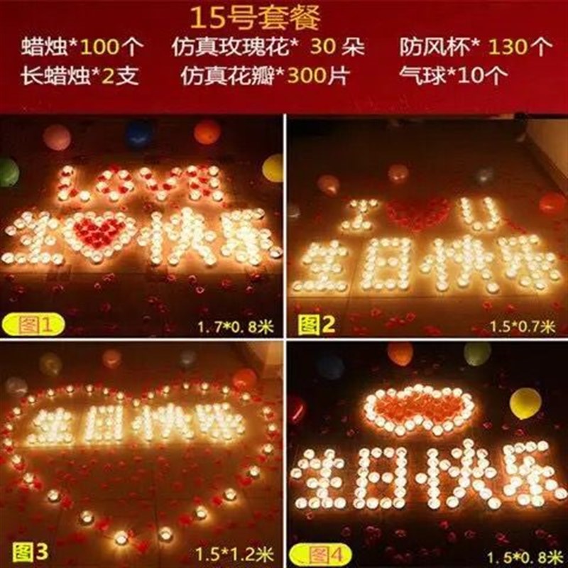 蜡烛浪漫生日惊喜求婚创意布x置用品表白道具场景心形装饰灯仪式