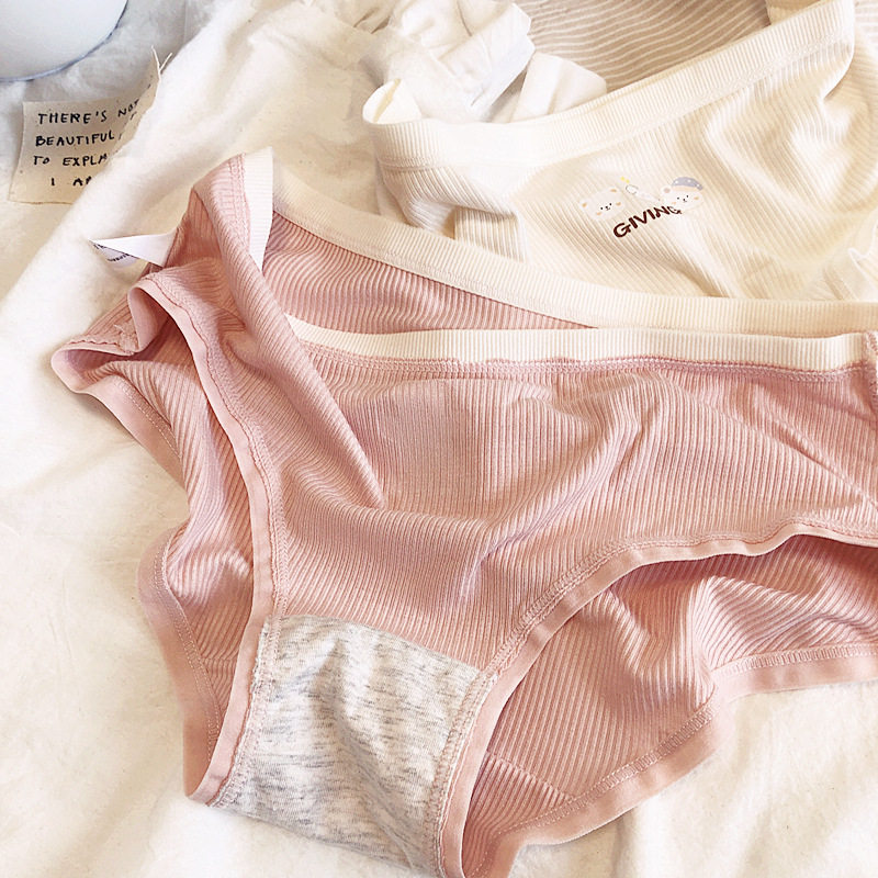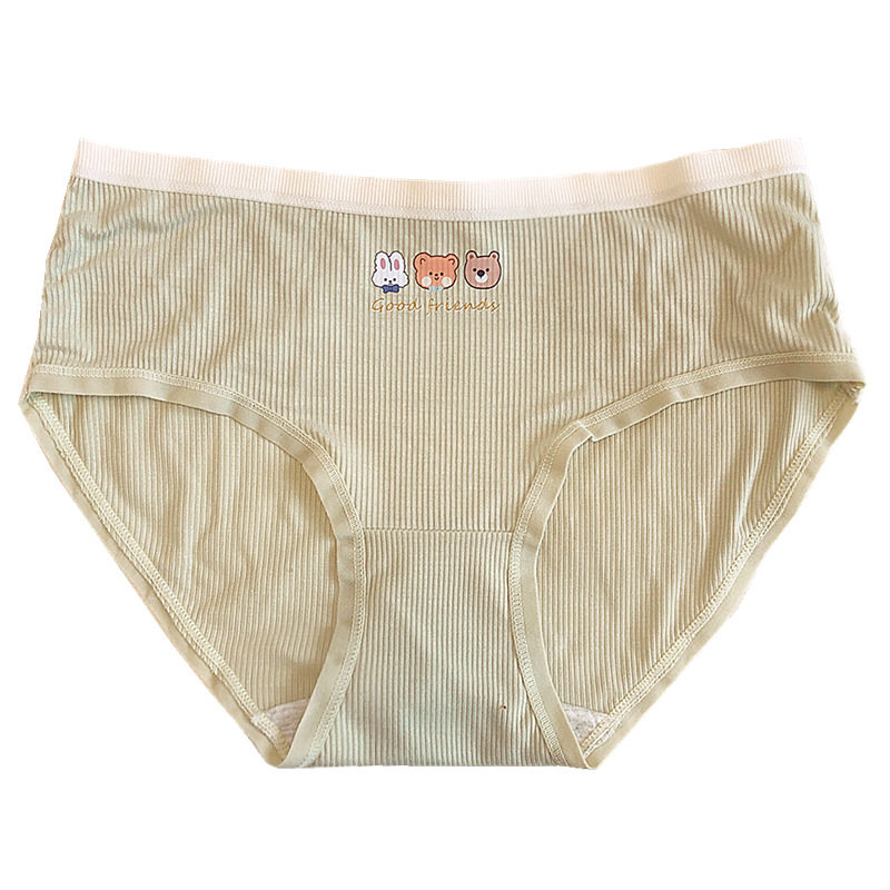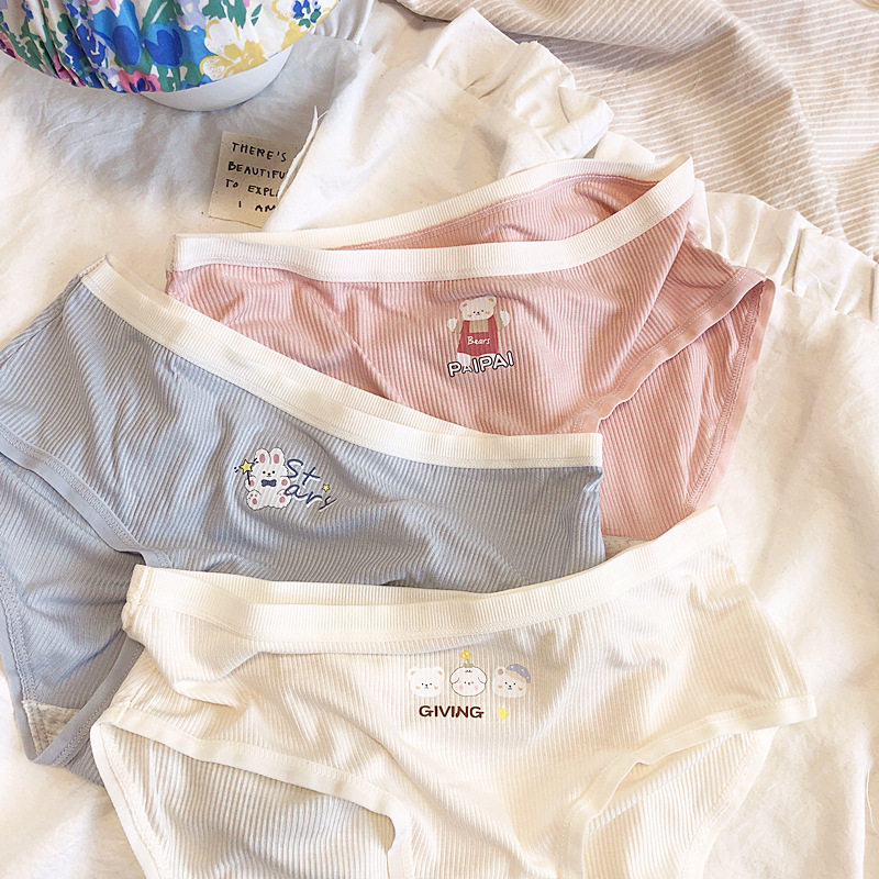 简约可爱小熊印花坑条莫代尔凉感透气内裤清新无痕低腰三角裤Q