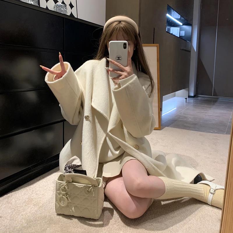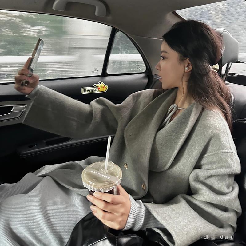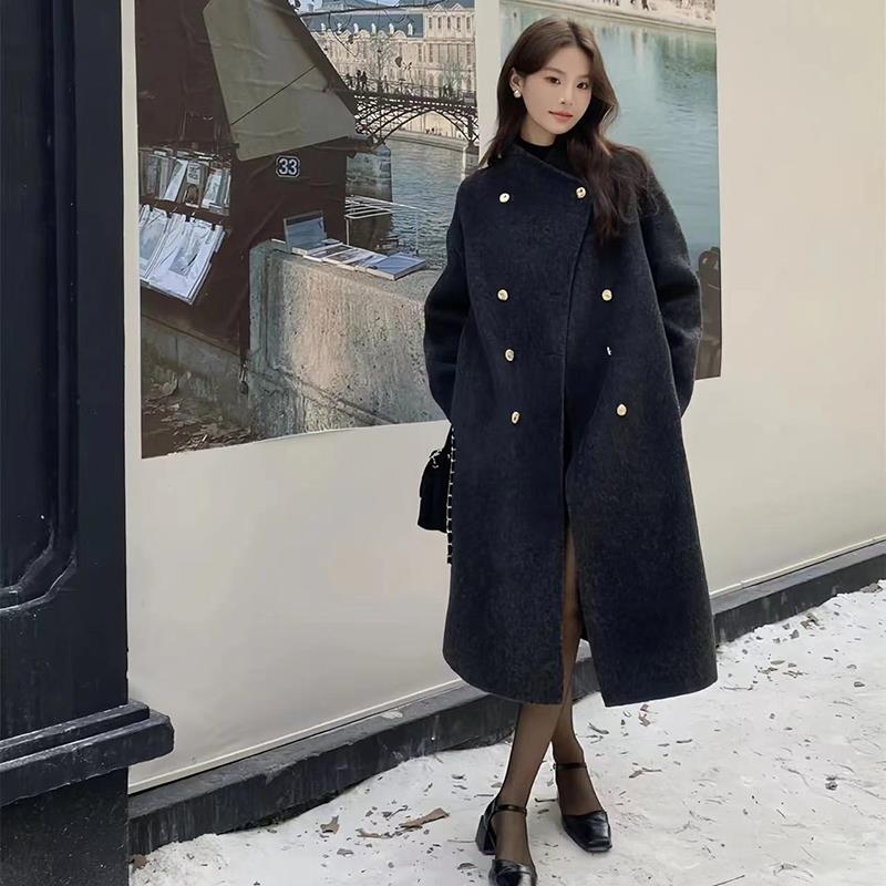 灰色羊毛双面羊绒呢子大衣女中长款2024冬季高级感毛呢外套小个子