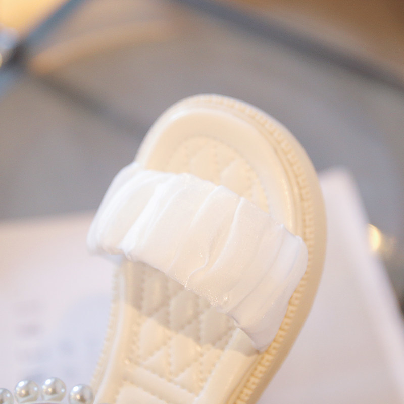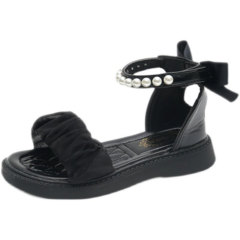 女童凉鞋2025新款夏季珍珠仙女风软底鞋中大童蝴蝶结欧根纱平底鞋