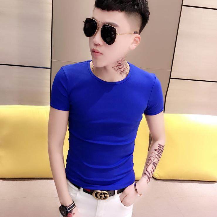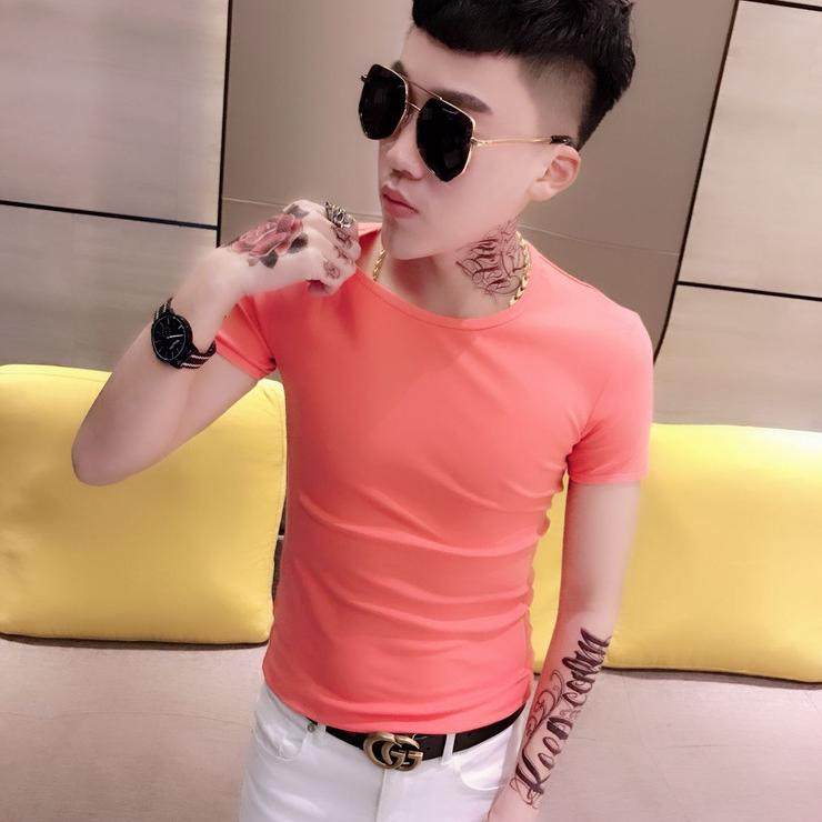 2024新款韩版男士紧身短袖t恤潮男修身圆领半袖时尚纯色打底衫