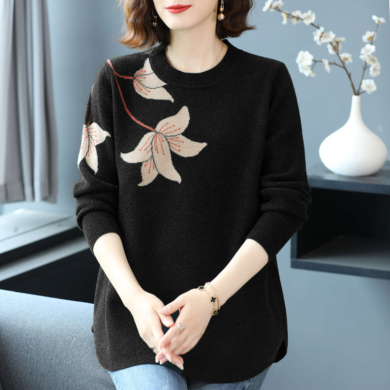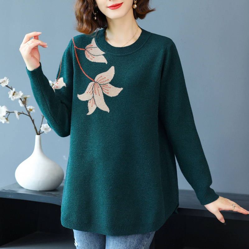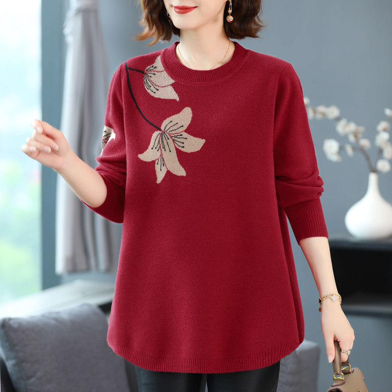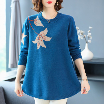 加肥加大码中年妈妈秋冬毛衣女宽松遮肚老年人洋气针织打底衫上衣
