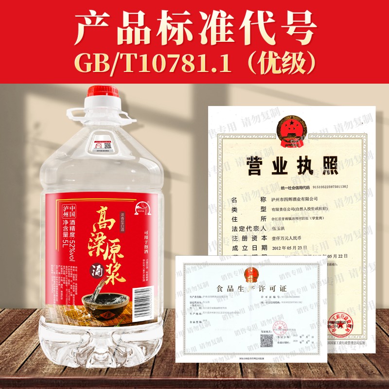 四川泸州散酒纯粮食白酒52度桶装高度酒高粱原浆泡酒专用酒约10斤