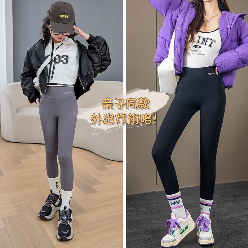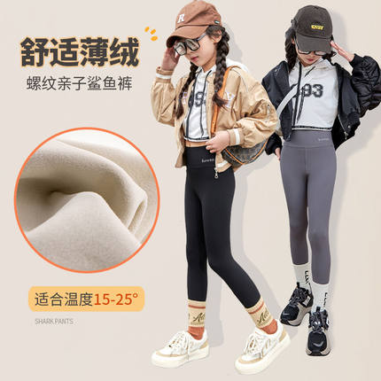 女童打底裤薄绒2025新款春秋冬季亲子外穿长裤高腰裤子儿童鲨鱼裤