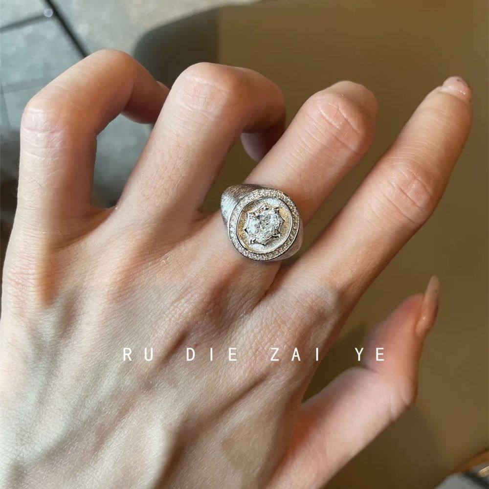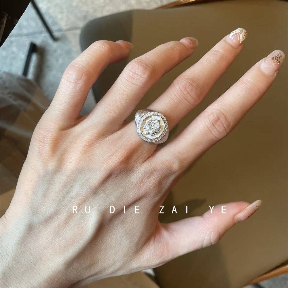 如蝶在野 南法假日~重工八芒星盾牌戒指轻奢高级感小众设计开口戒