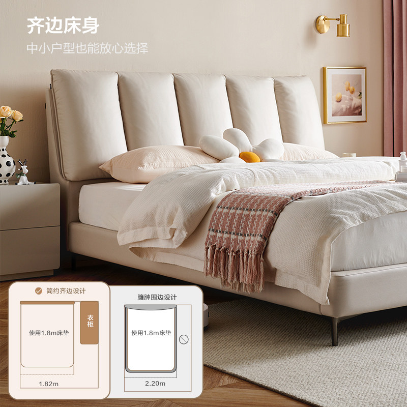【品牌秒杀】全友家居现代简约布艺床1米8双人床奶油风女生软包床