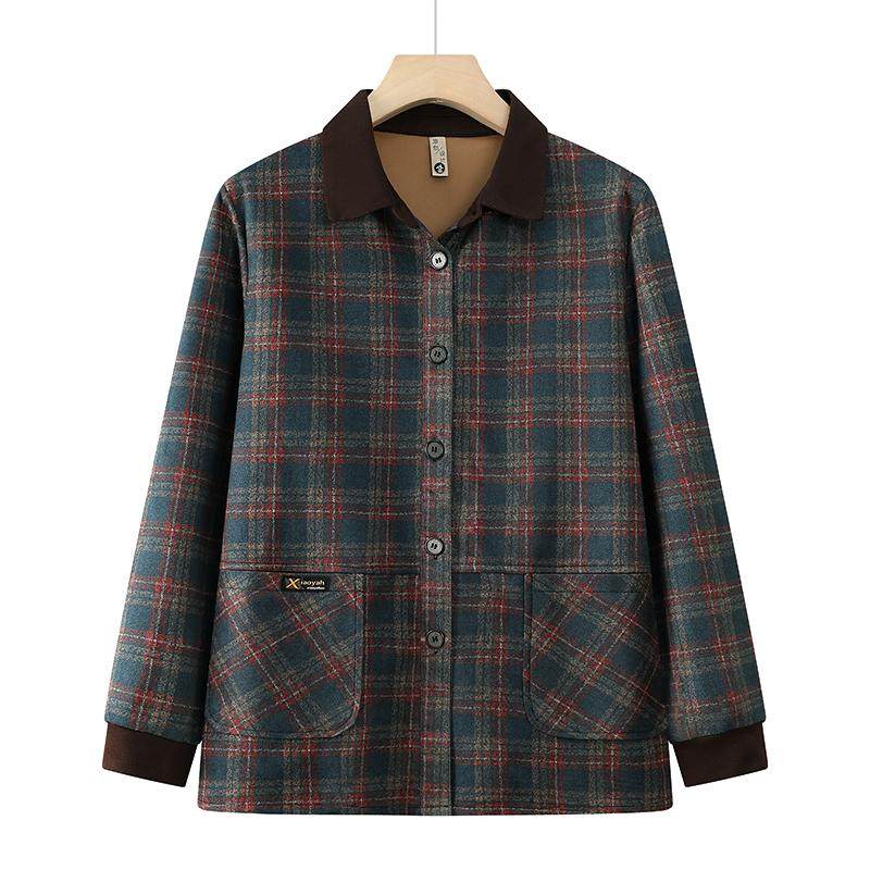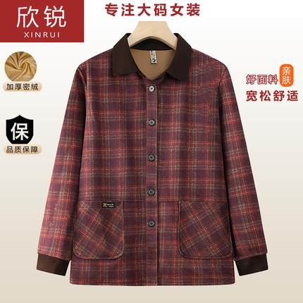 胖奶奶装春秋季衬衫妈妈中老年加肥加大码宽松老太太格子衬衣外套