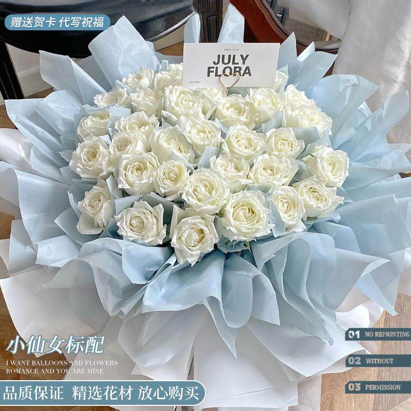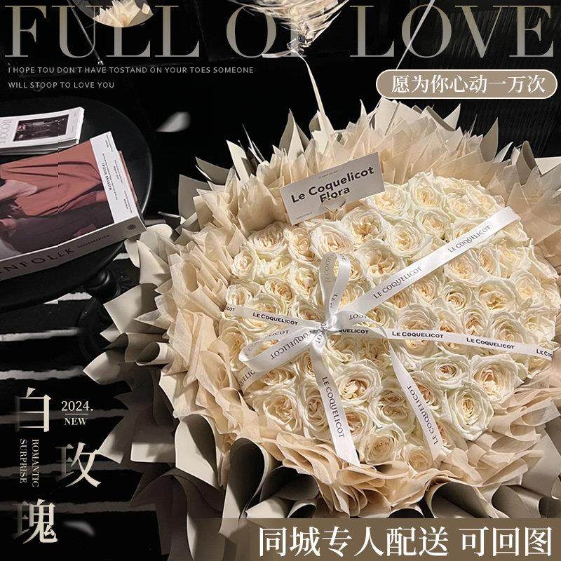 99朵白玫瑰花束生日鲜花速递同城广州北京上海全国配送女友礼物