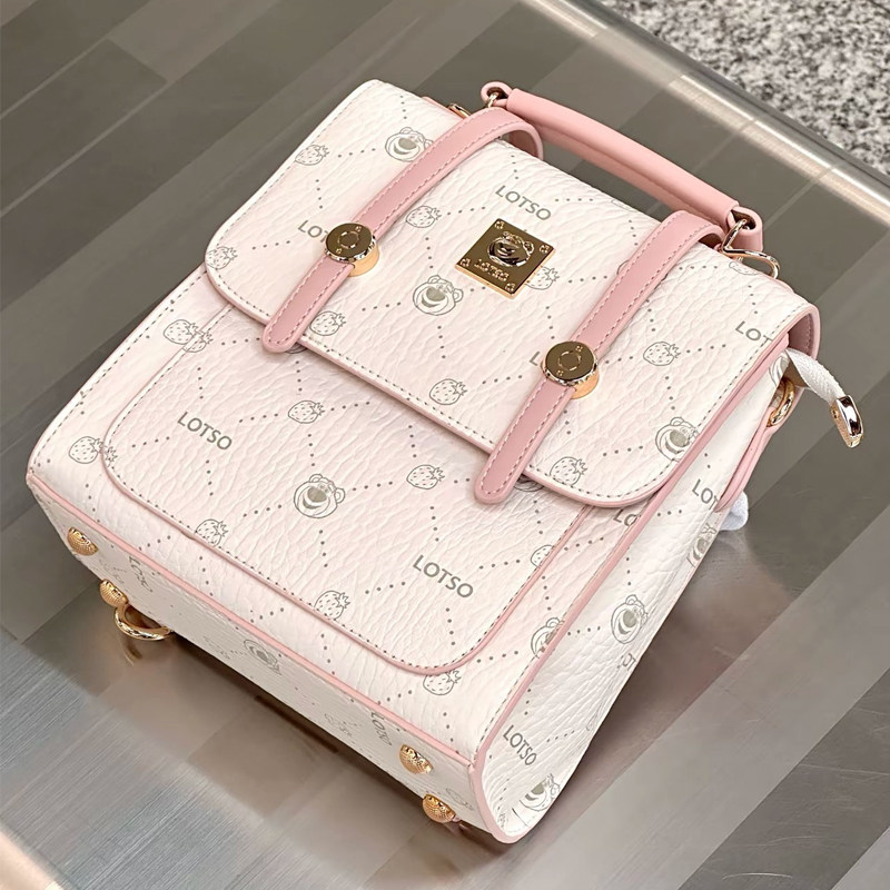 迪士尼甜美风草莓熊双肩包女款学生儿童书包小方包背包书包手提包