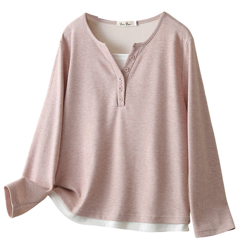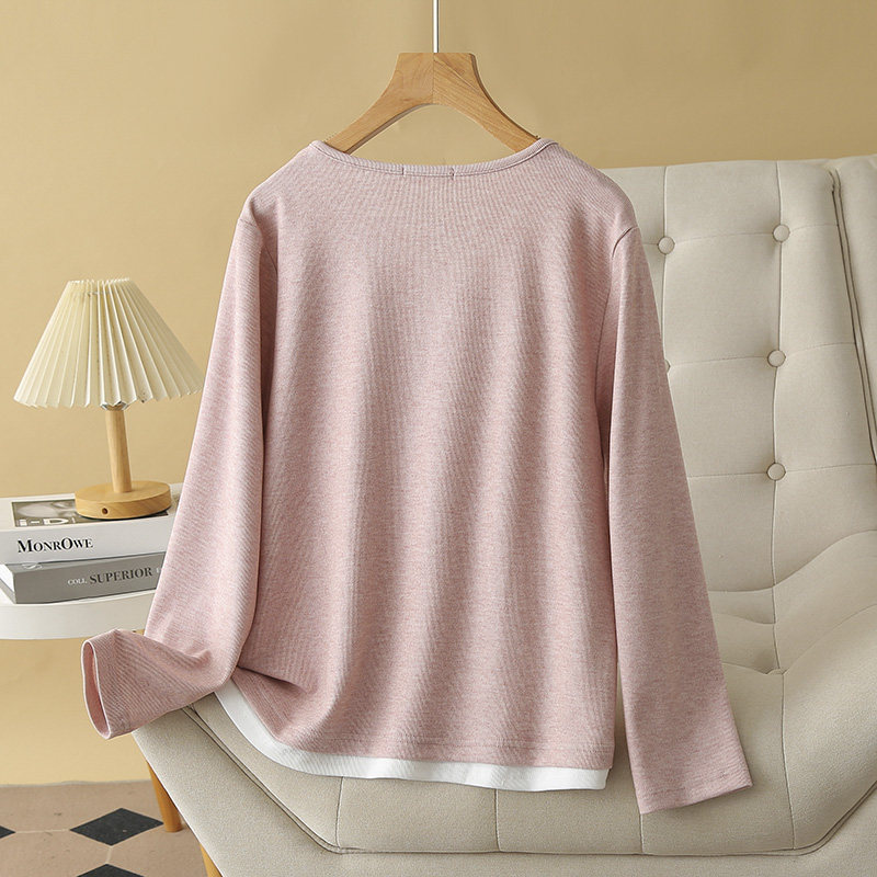 大码打底衫女长袖拼色假两件上衣