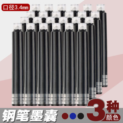 钢笔墨囊3.4常用口径墨水胆学生通用可替换墨囊50个200个装黑蓝红