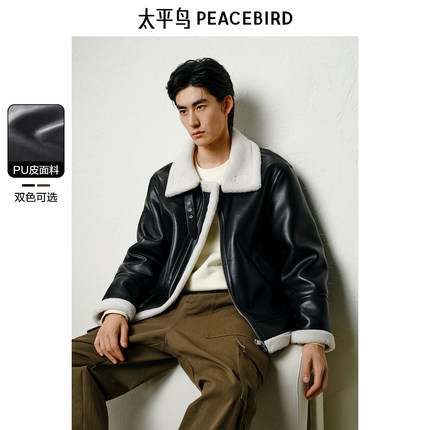 【仿羊羔毛】太平鸟男装PU皮机车夹克新款立领茄克外套潮