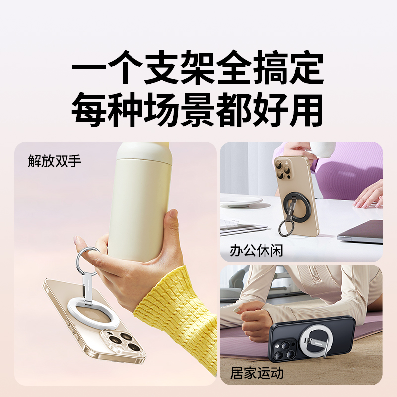 绿联磁吸指环手机支架双环背贴Magsafe强磁吸金属指环扣桌面便携超薄吸附适用iphone17苹果华为新款车载神器
