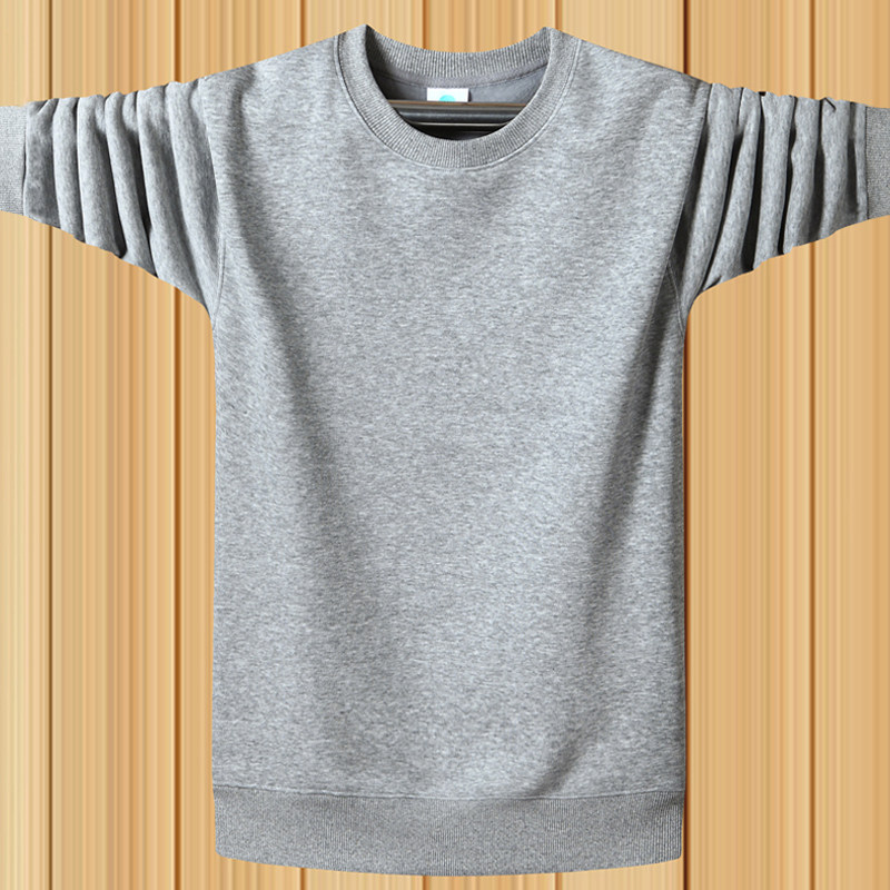 卫衣男薄款圆领春秋冬季宽松大码纯棉运动加绒纯色长袖t恤 咖啡色