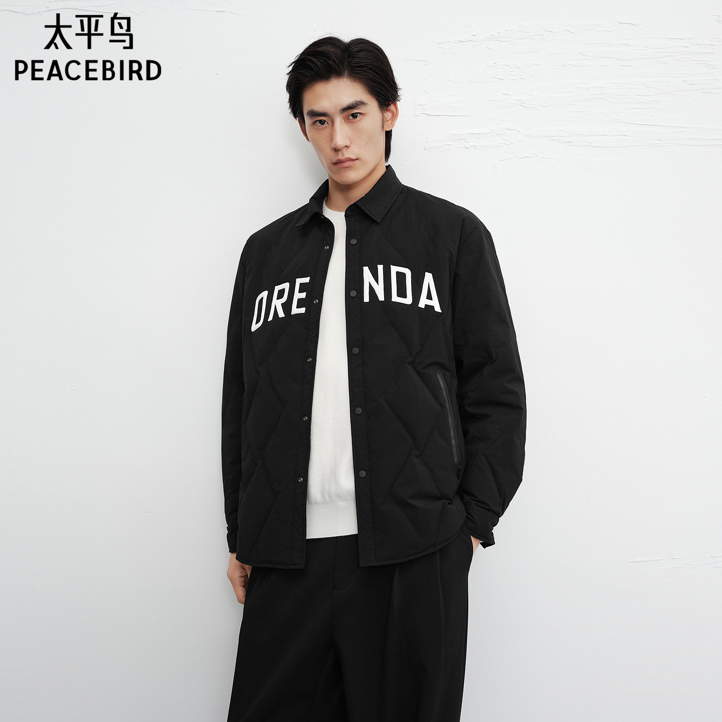 太平鸟男装 轻薄羽绒服冬季衬衫羽绒服翻领字母印花衬衫羽绒外套
