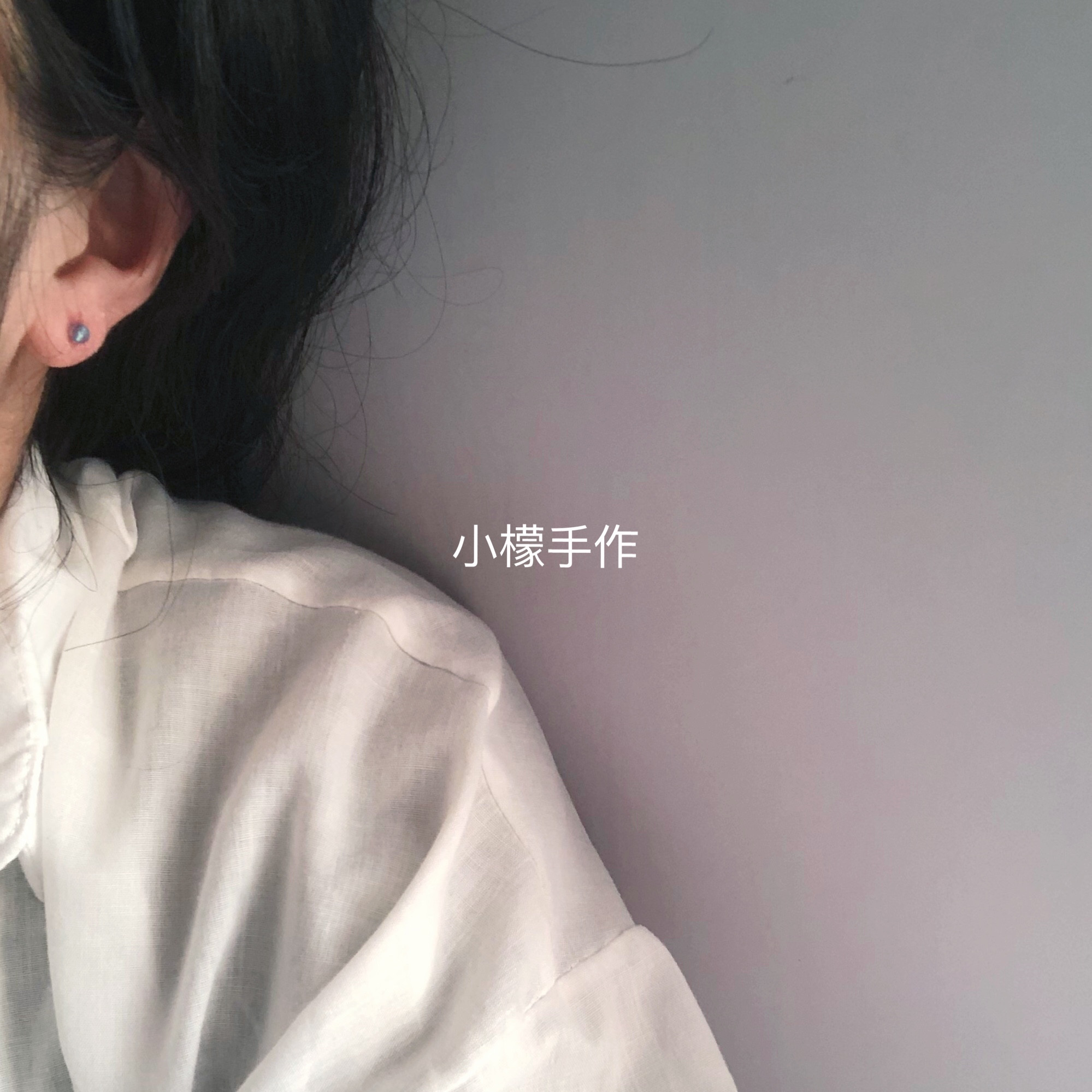 4mm天然海蓝托帕石净透切面耳钉足银999防过敏耳骨钉手作女养耳