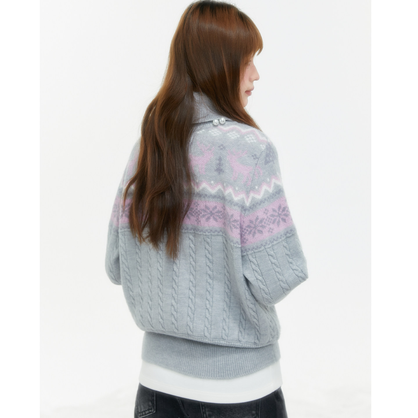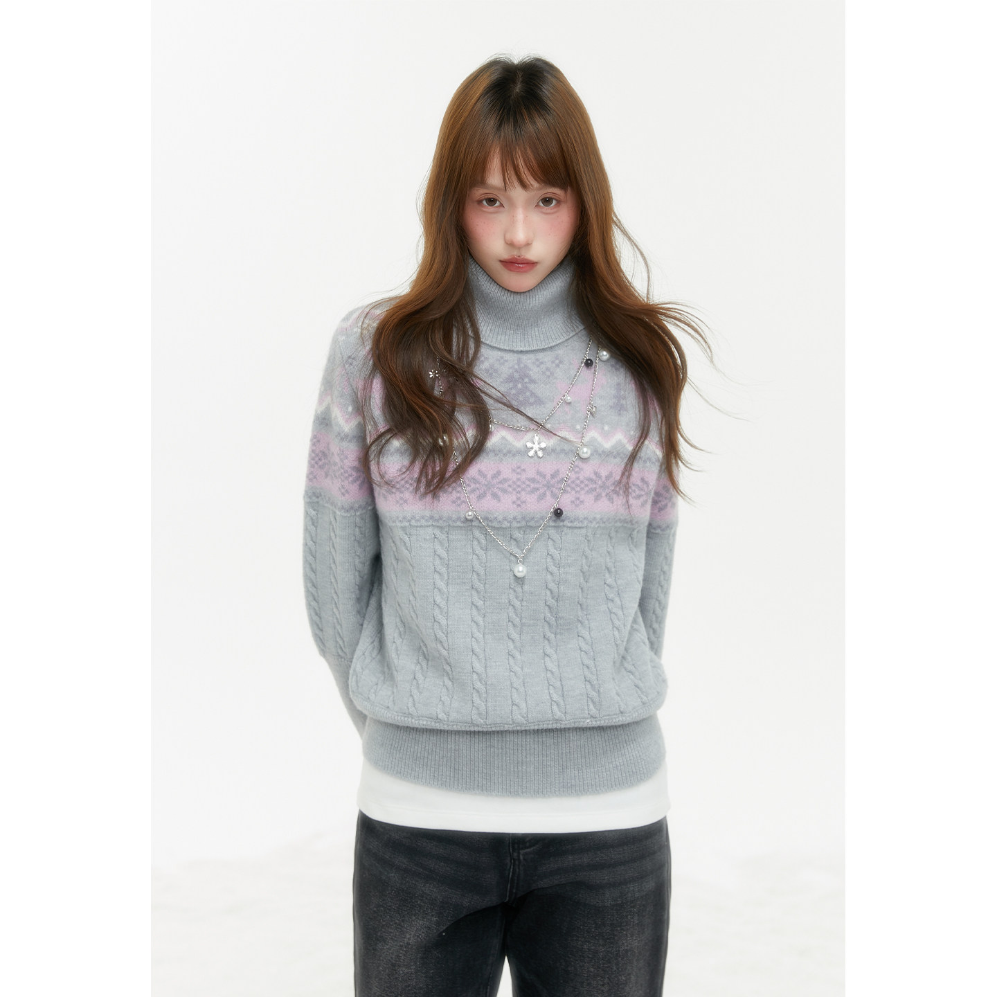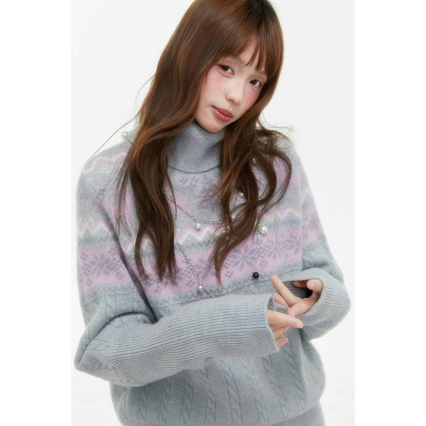 ECHOSTA费尔岛灰色针织上衣半高领毛衣收腰女秋冬针织衫慵懒风