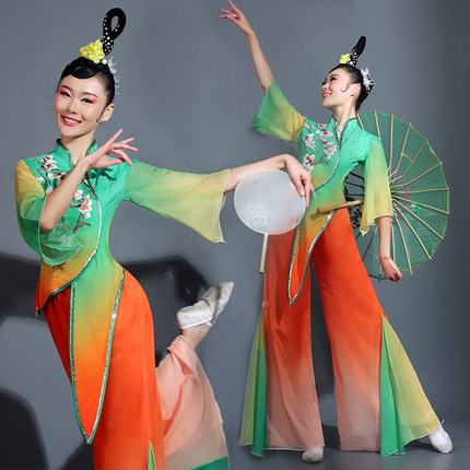 秧歌舞演出服装女新款扇子舞跳舞衣服民族风古典修身显瘦舞蹈服