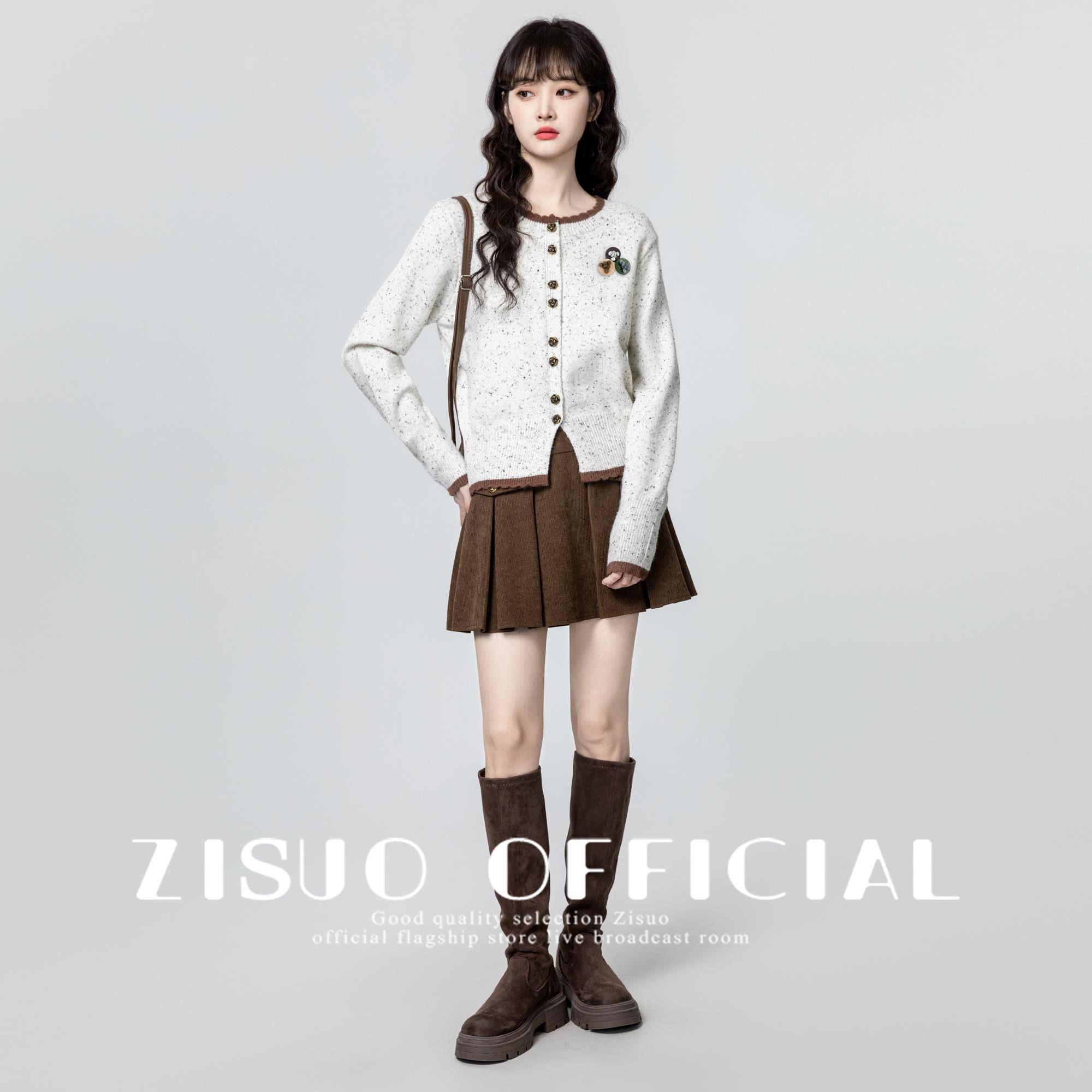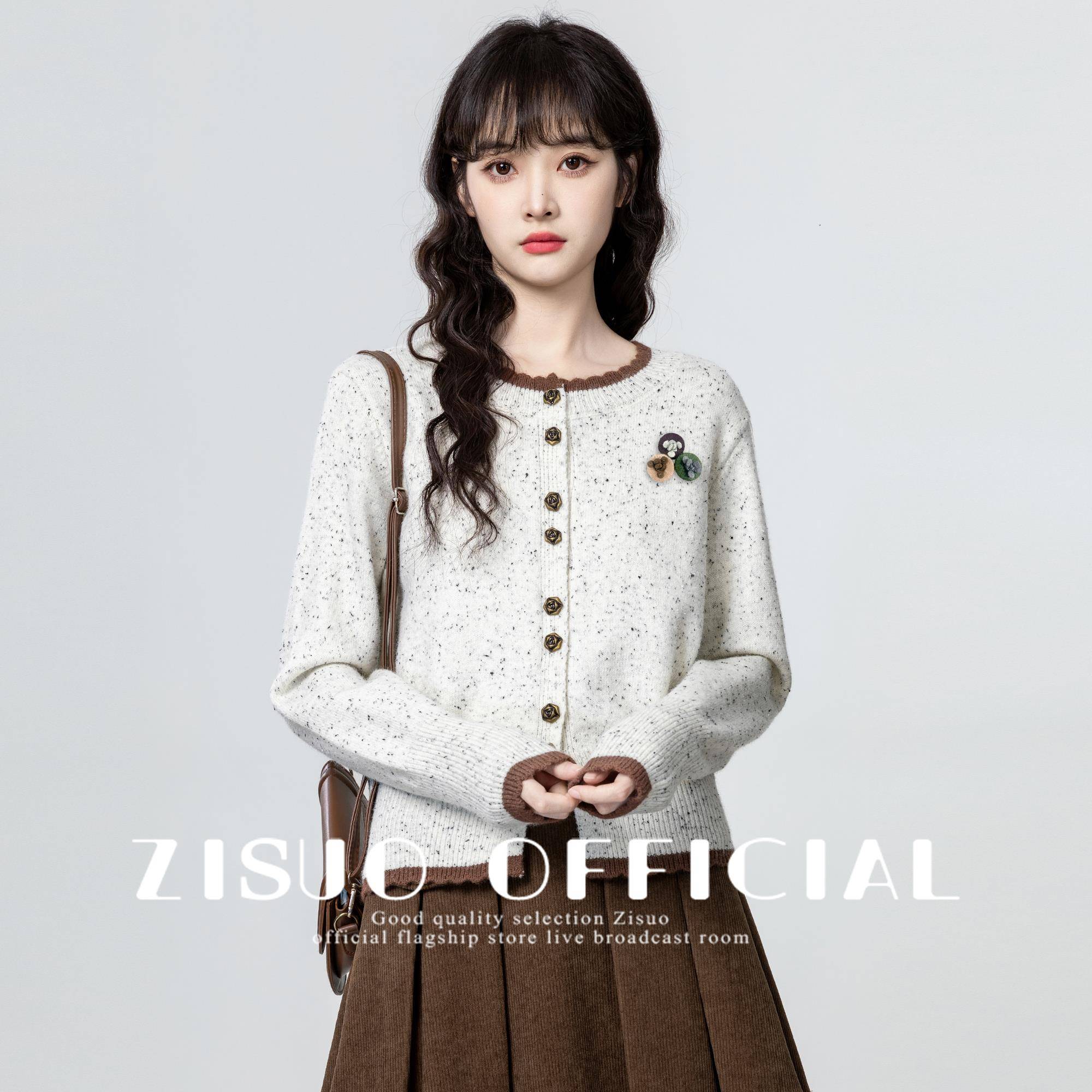 复古圆领针织开衫女2025春秋新款设计感别致撞色毛衣外套短款上衣