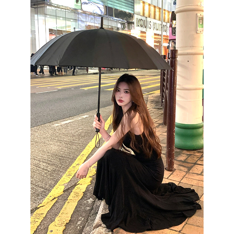 Adan鱼尾吊带裙2024韩版修身显瘦百搭莫代尔长款A字黑色连衣裙女