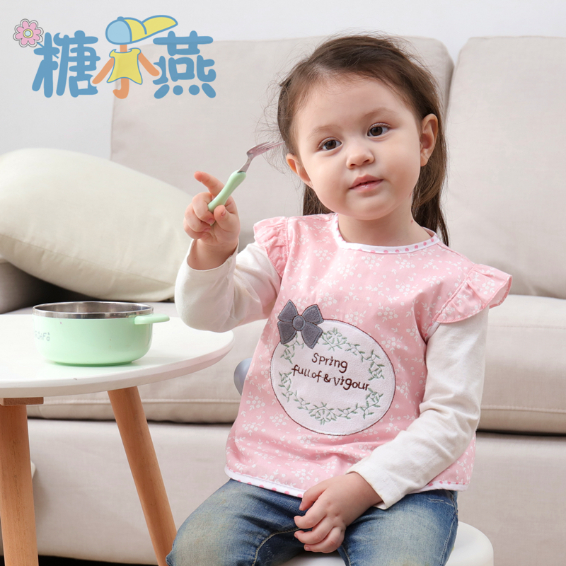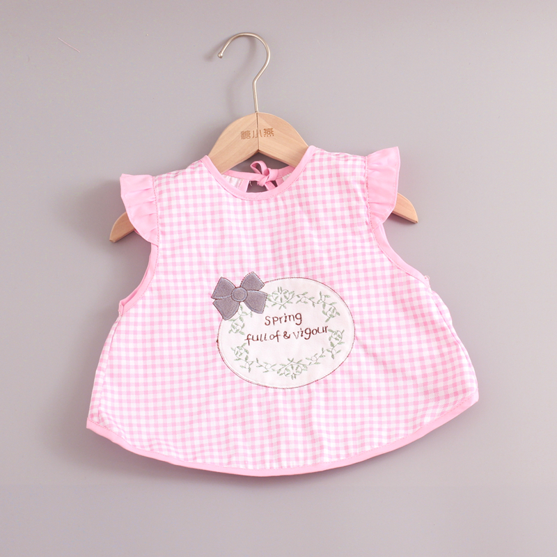 薄款春秋防水无袖女宝宝罩衣纯棉公主围裙吃饭衣四季儿童围嘴围兜