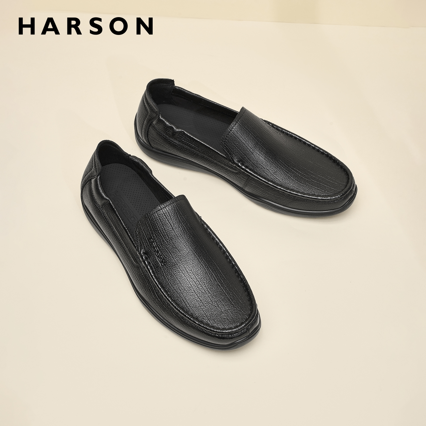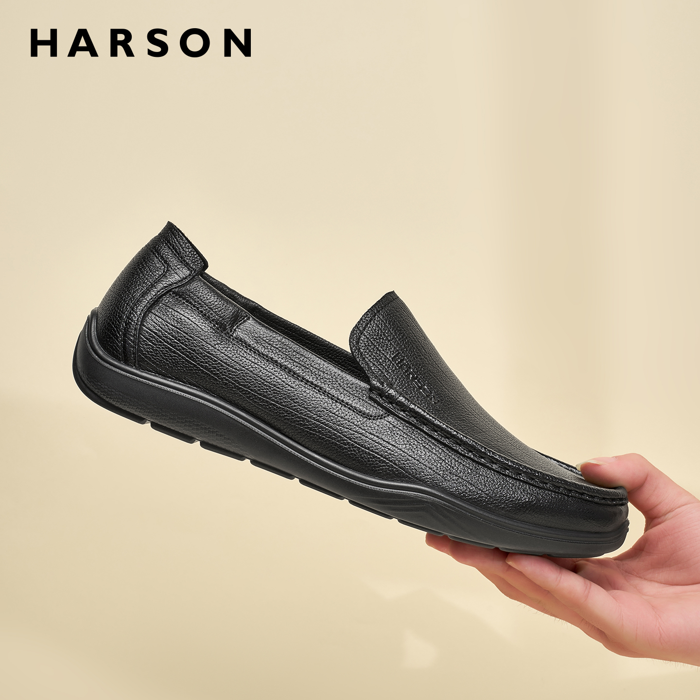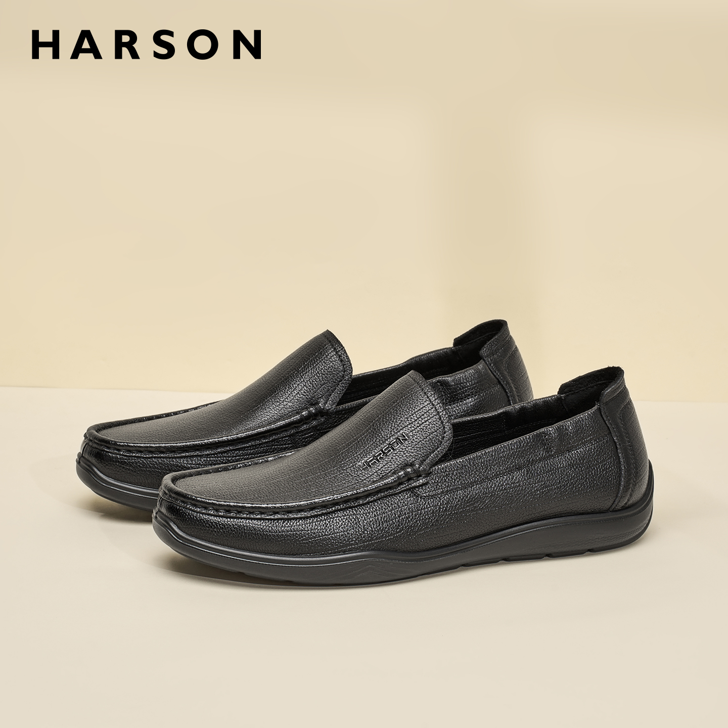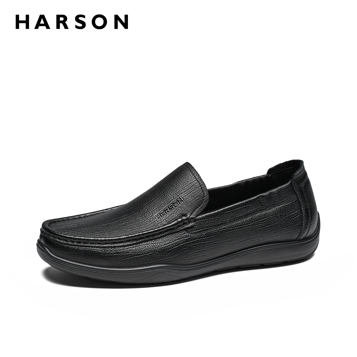 哈森秋季男鞋一脚蹬懒人鞋真皮软底乐福鞋男士商务休闲皮鞋爸爸鞋