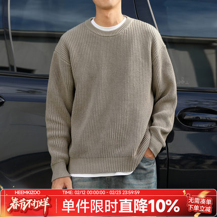 嘿马七作美式复古冬季男士针织衫潮牌慵懒风圆领毛衣宽松休闲打底