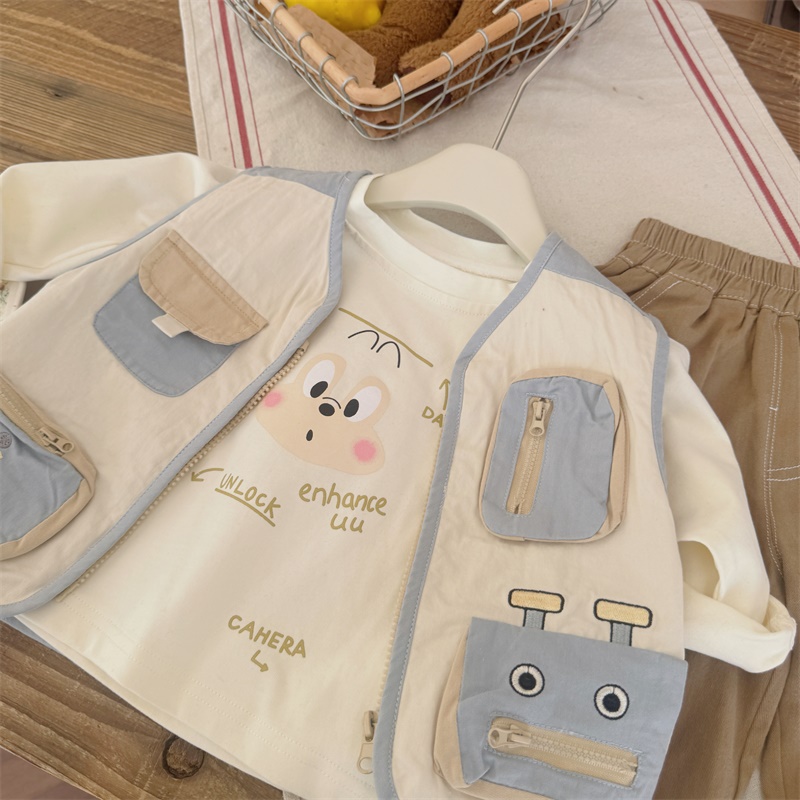 儿童纯棉马甲外穿春秋款男女童开衫工装背心婴儿宝宝春装卡通洋气