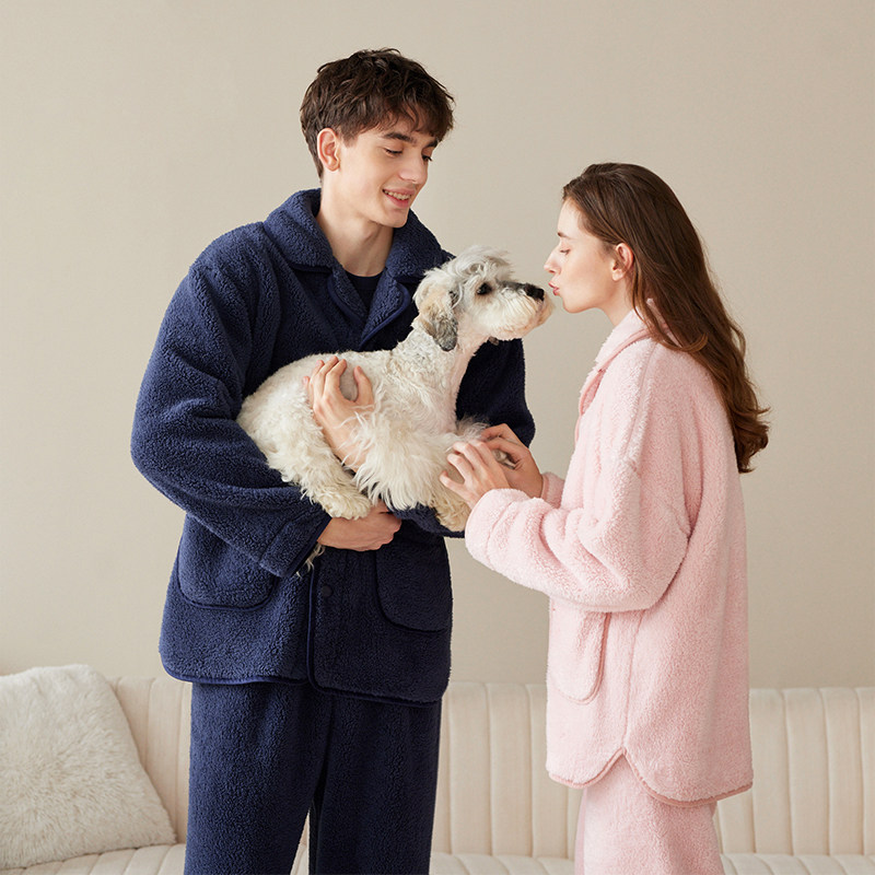 芬腾情侣睡衣冬珊瑚绒夹棉家居服