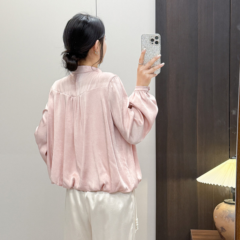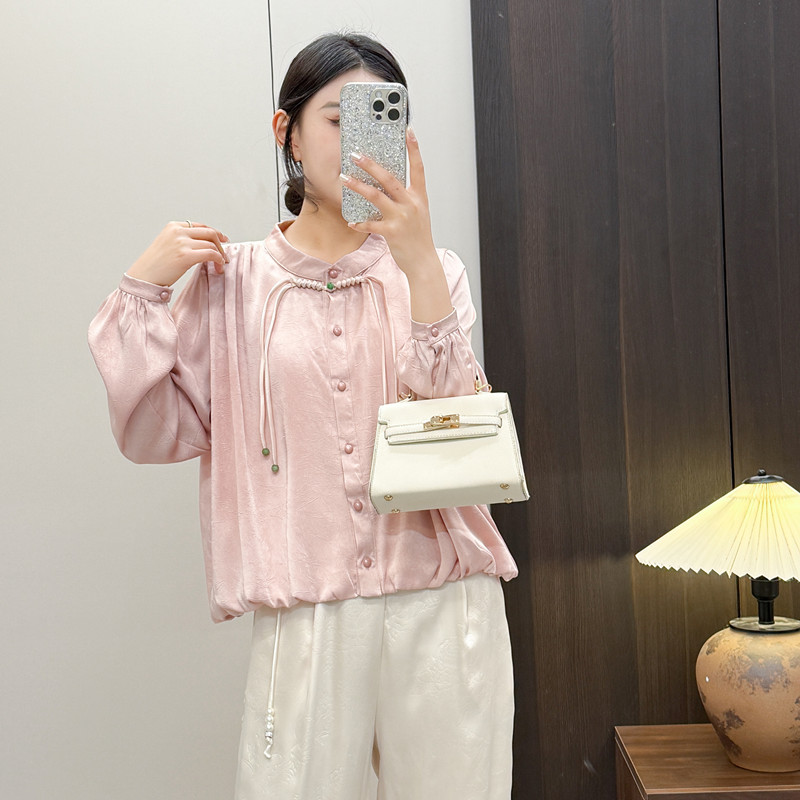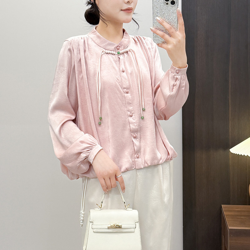 惠衣阁春季女长袖衬衫立领国风衬衫韩版休闲新国风短款上衣