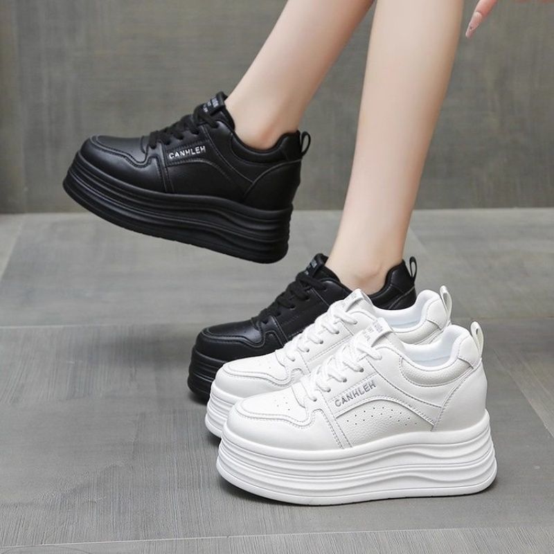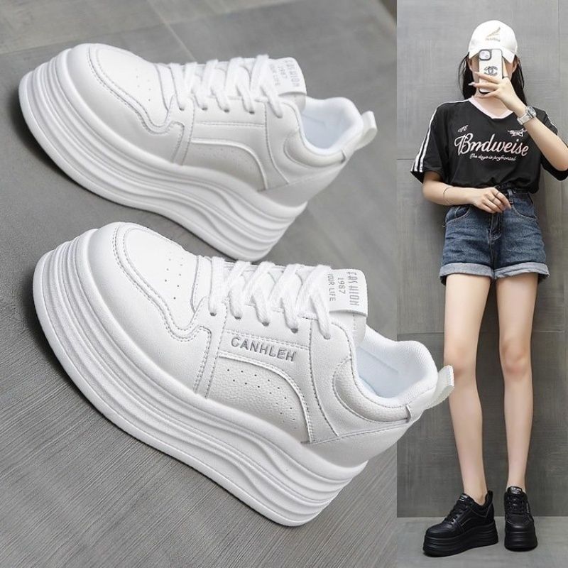 真皮小个子厚底内增高8cm小白鞋女2025秋季新款休闲运动板鞋单鞋