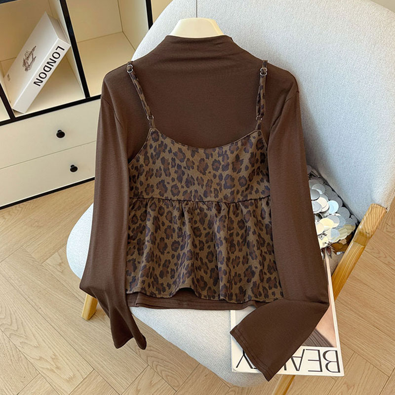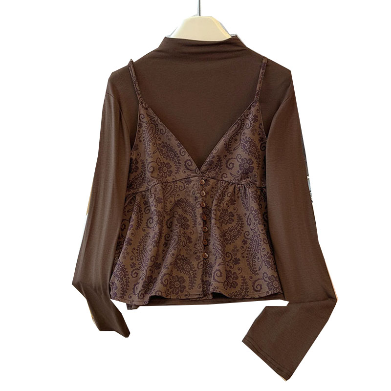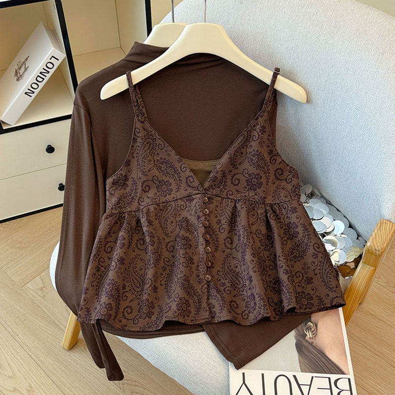 150cm显高小个子冬装加小码女装XXXS花纹吊带背心打底休闲两件套