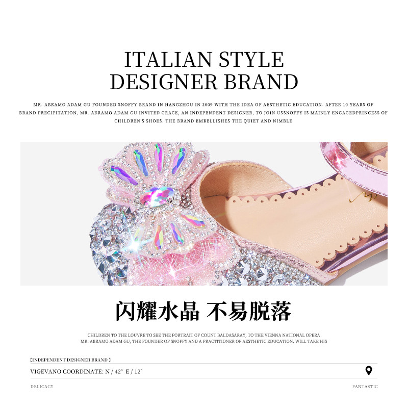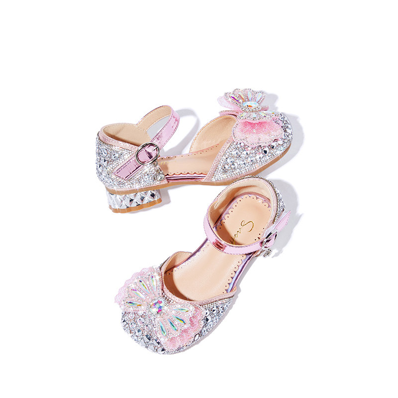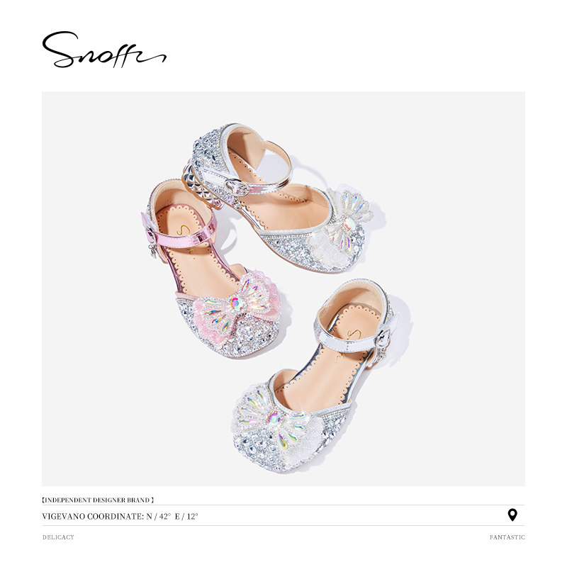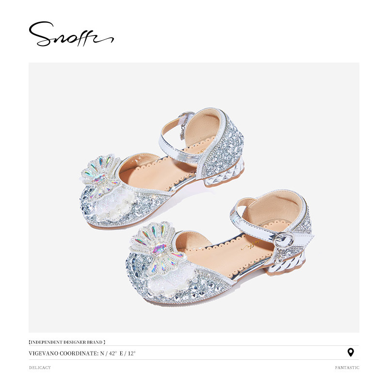 Snoffy斯纳菲女童凉鞋2025年夏季新款儿童软底小高跟水晶公主鞋子