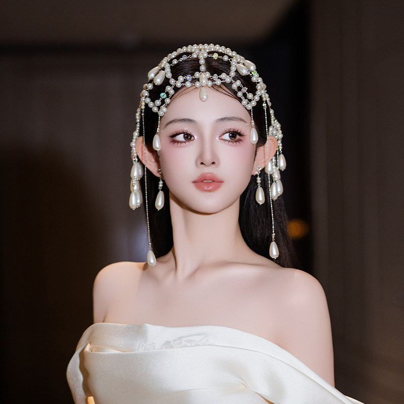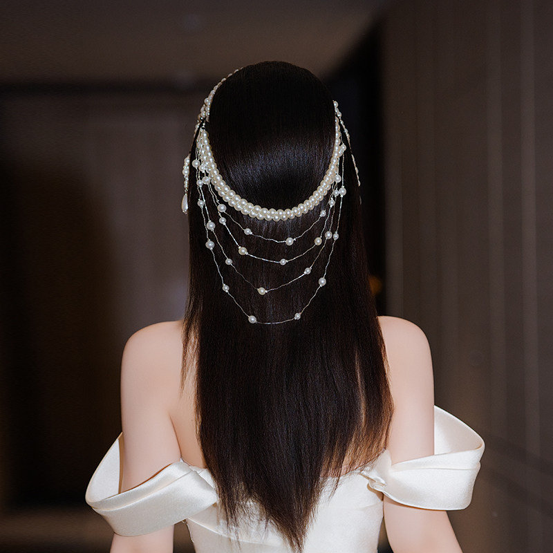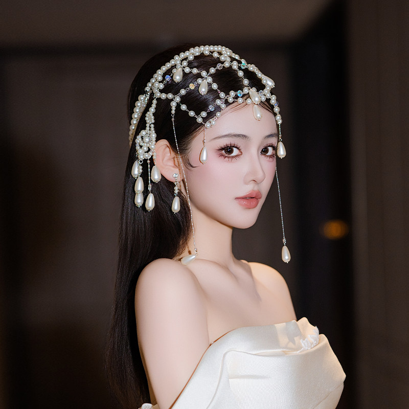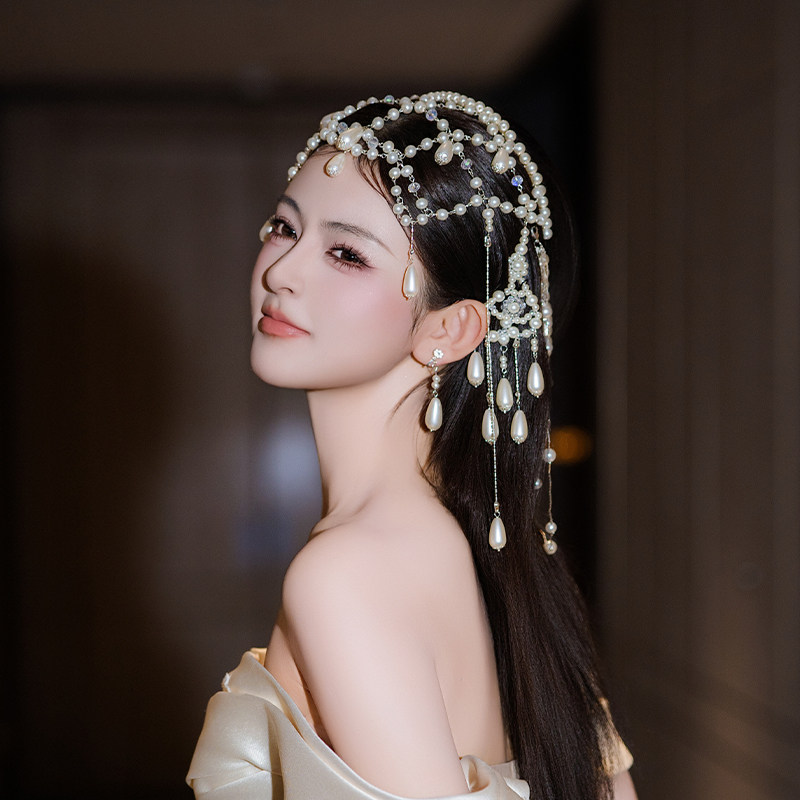 明星同款韩系优雅轻奢异域风高级感水滴流苏珍珠头饰新娘舞台配饰