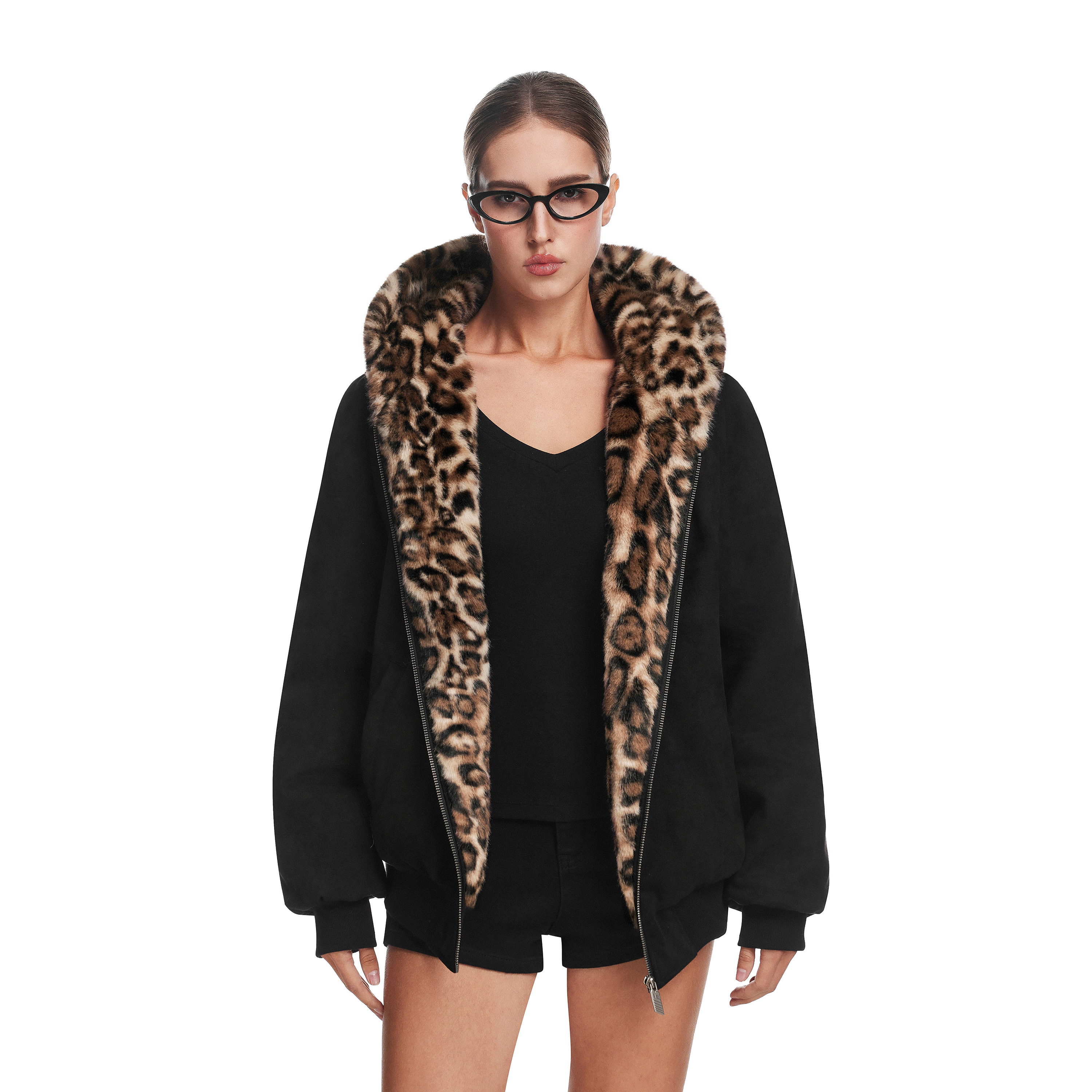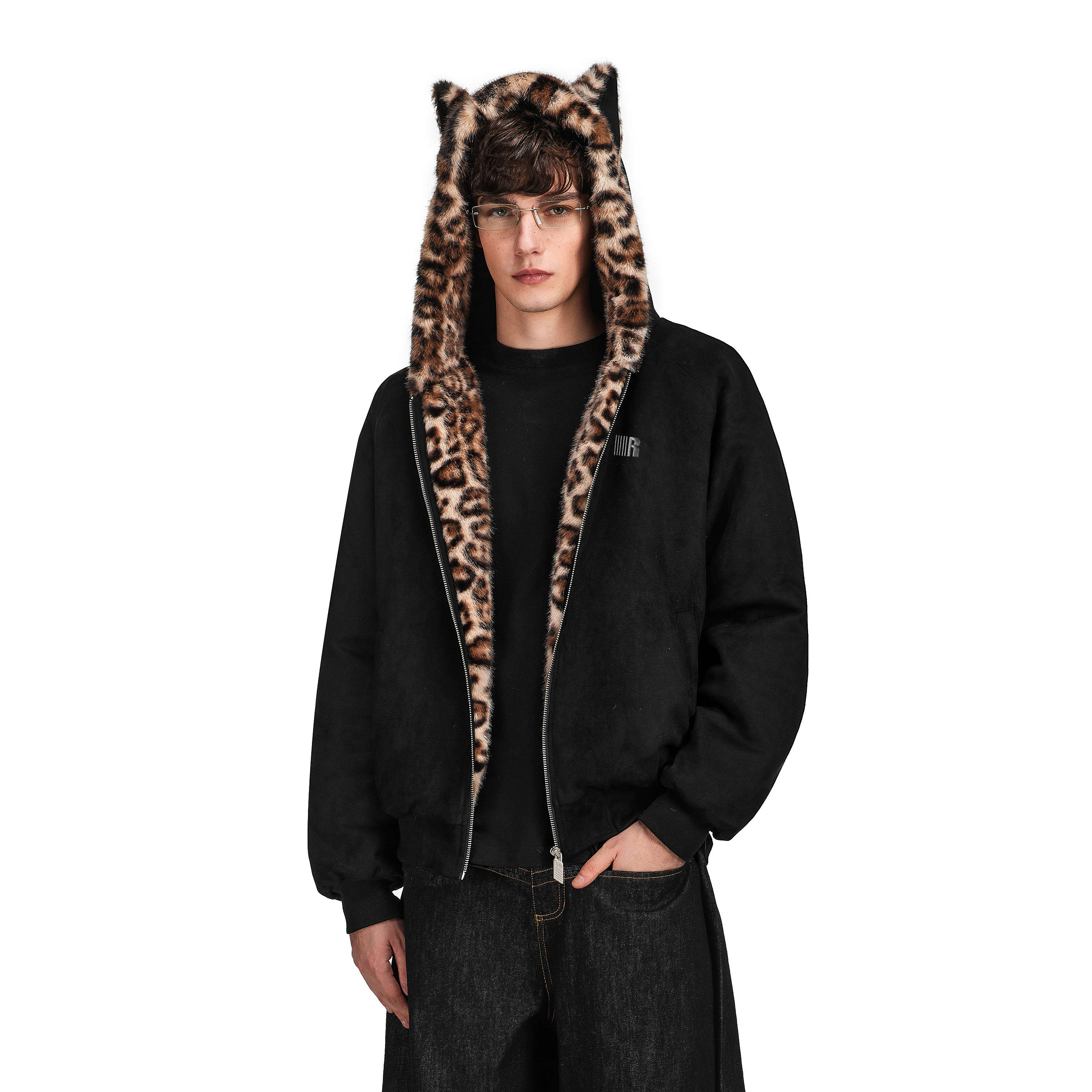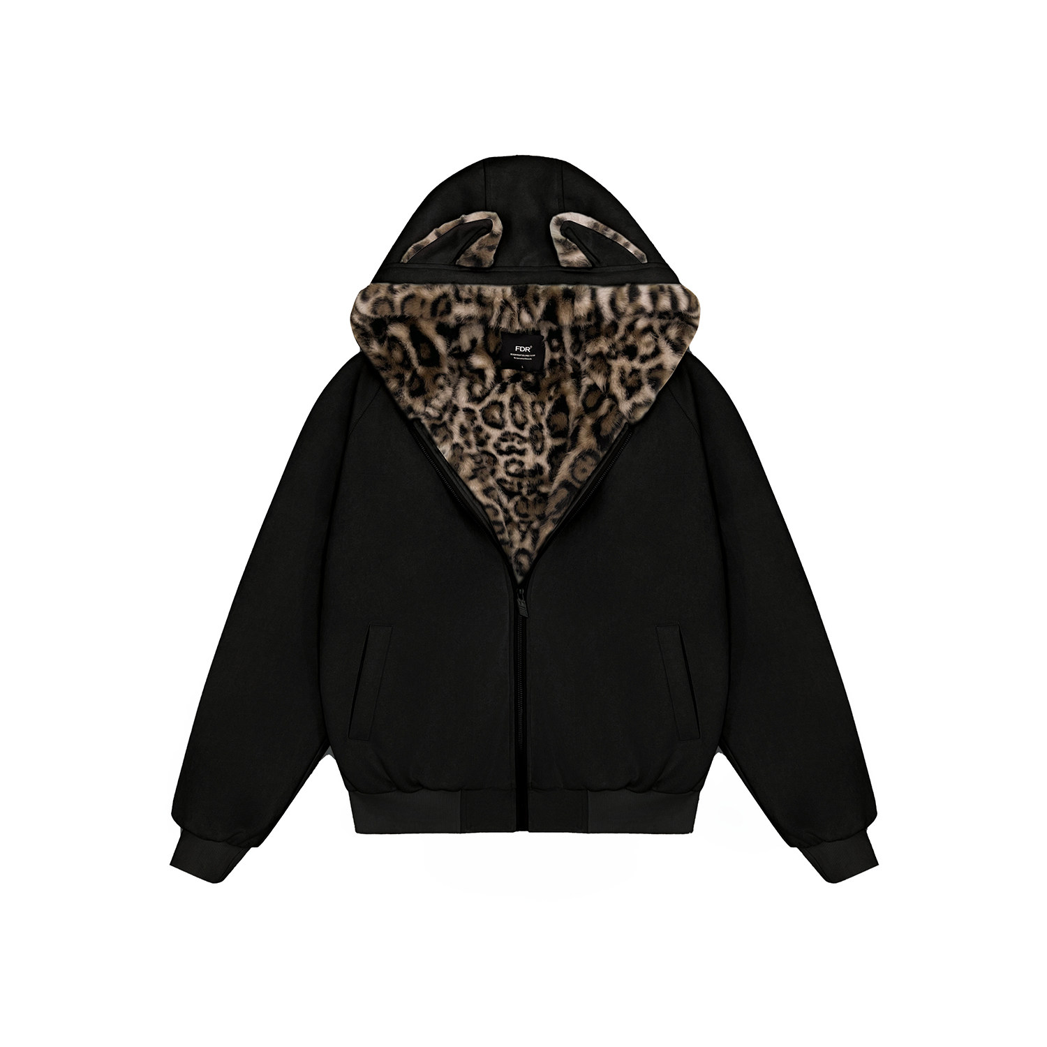 FDR秋冬棉袄加厚情侣连帽豹纹棉服男仿麂皮毛领夹棉座山雕外套女