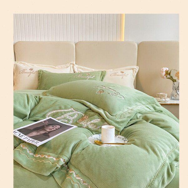 绒法兰床上四件套床单冬季南通亲肤加厚珊瑚绒高端简约牛奶绒被套