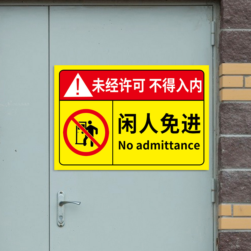 闲人免进提示牌贴纸禁止入内指示牌非工作人员未经允许禁止入内警示标志告知牌生产仓库重地严禁入内标志标识